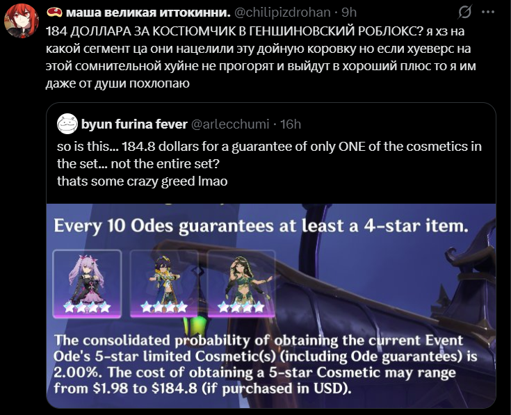 Я конечно понимаю что бывают там всякие наносеки и шейхи арабские которые кормят гачи , но нахуя гречневые работяги то из кармана китайца кормят и потом ноют ?