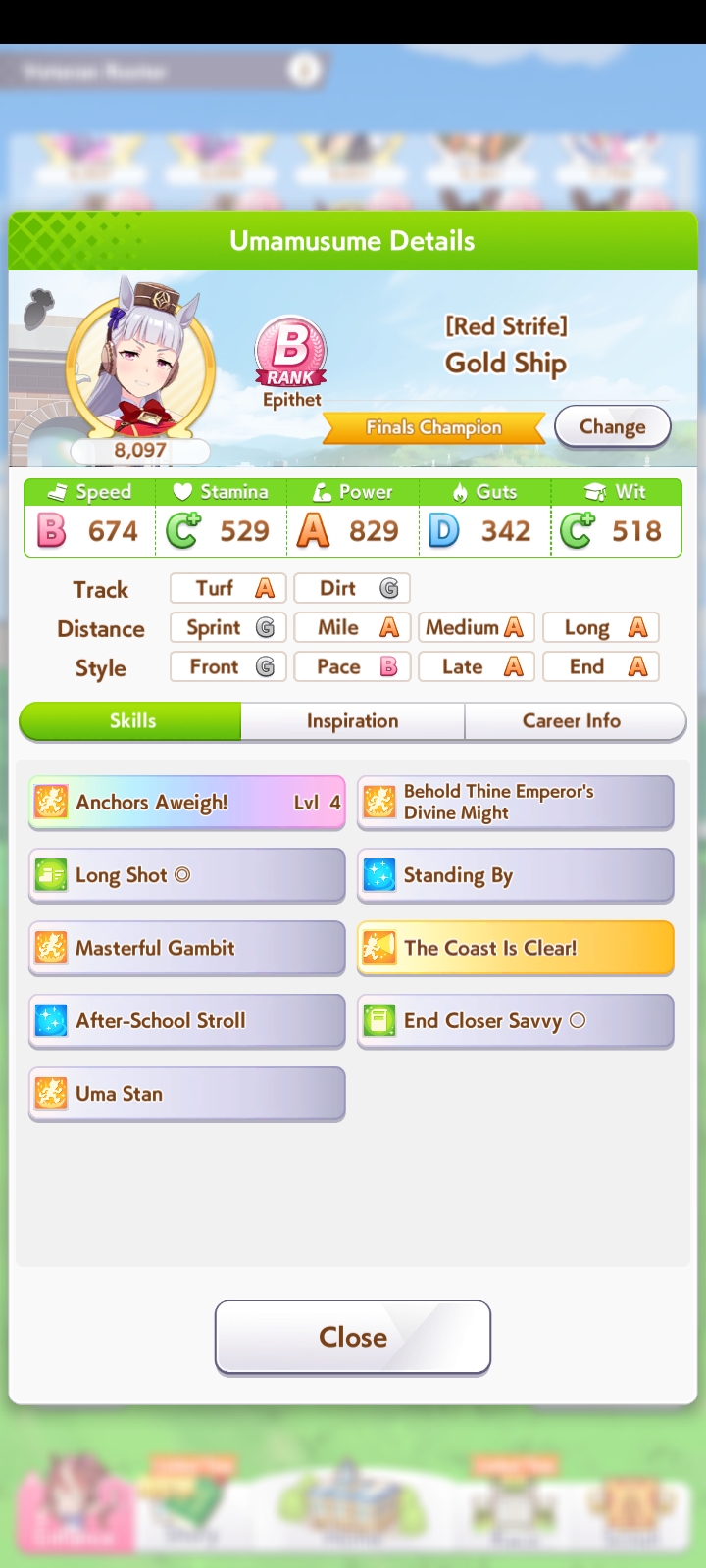 Самое обидное это когда чужая ума имея те же статы и стратегию продолжает бежать и разгоняется перед самым финишем, а твоя буквально бросает бежать и останавливается. И нет, дело не в стамине и не в гатсе, Тазуна, они приблизительно одинаковые и на эту гонку их точно хватает. Если и есть разница то +- 20-30 очков не более, по скилам тоже +- всё то же самое и ничего необычного, да и срабатывание было бы заметно. Но обходят как стоячую. Смотришь и думаешь ну чему тут можно было вдрызг проиграть финишный спурт, ведь ни навыков на ускорение ничего нет, всё тоже самое что и у меня. Короче хрен проссыш его этот казик.