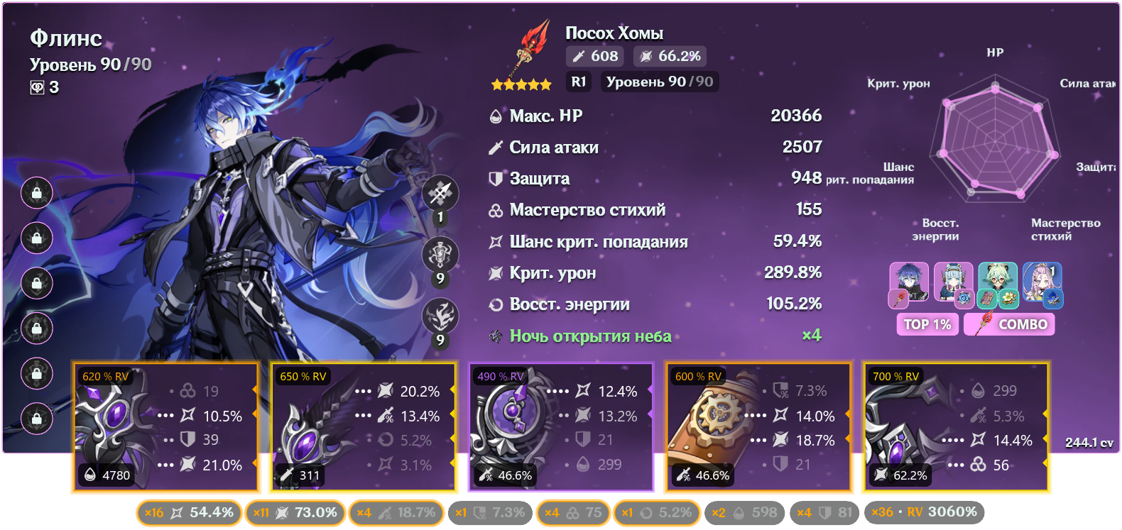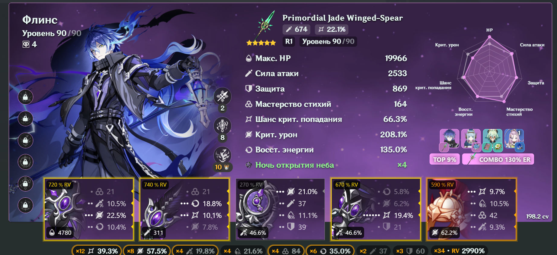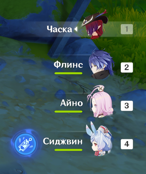 План такой, сначала наваливаем Чаской лунный дамаг, а потом, пока у неё полёт на кд, ебашим комбуху Флинса. Айно всю хуйню бафает, Зига просто милая и не даёт никому умереть.