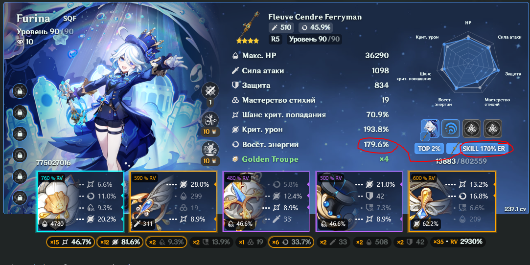 Не удивлюсь, если у с0р1 Нефер будут статы как у Базвилета ака 100/380. Тупо халявный критрейт: 8 сигна, 30 сет, 10 лабуба, 10 с2 няхида; Халявный критдмг: 124 сигна, 20 лабуба, 20 няхида. Не чар, а имбища.