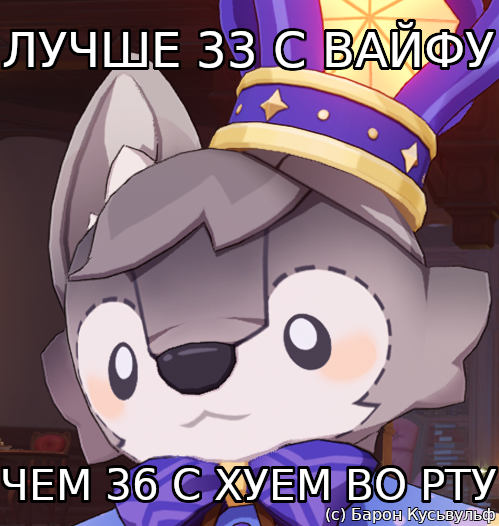 А что, мужики? Что мы, Дай Вея что ли подведём? Мы жуки-плавунцы или мужики вайфу энжоерские гречневые? Али не накрутим вайфучек два эйдолона? За гроши совестью мужицкой приторговали? Да нет, я по глазам вашим мужицким вижу, что тут фритуплейных нет.