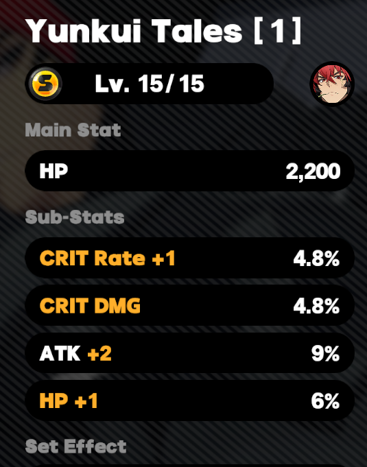 When off-field, the wielder’s Energy Regen increases by 600 per second. When the wielder uses a [EX Special Attack], the Daze dealt by their Physical ATK increases by 16%, stacking up to 3 times and lasting for 6s. Re-triggering this effect refreshes the duration.