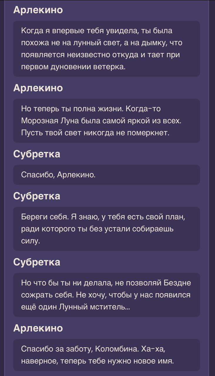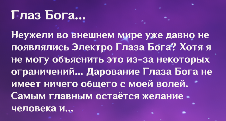 >>5756619 > Человеческая часть БОЖЕСТВЕННОЙ сущности Божественная сущность отрезала от себя кусок, который божественным никогда не был. С момента, как этот кусок вообще отделился и стал существовать отдельно, он сразу был обычным. Что конкретно тебе непонятно в словах "I separated my divinity" и "human counterpart"? С момента как сущность по имени урина начала существовать, она уже была обычным человеком. Даже Нёвиллет согласен: > Neuvillette: ...But Furina is only human, isn't she? > Neuvillette: Even though she has had a long life, her mind is no stronger than that of any other ordinary human being. Он подтверждает, что она обычный человек с обычными способностями и жила долго только из-за проклятия.