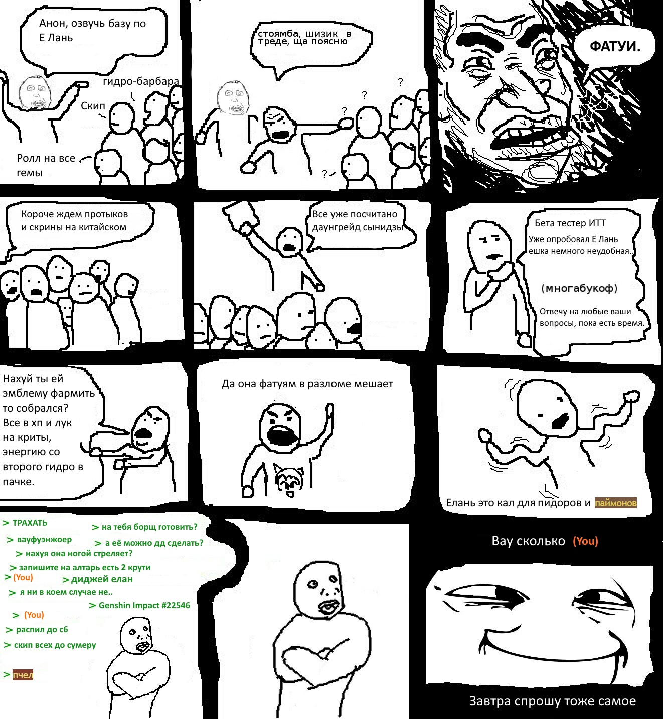 >Количество контента, которое выходит каждый патч За 10 лет, за которые компания Юбисофт на 10к сотрудников в игру, которая является их единственной дойной коровой (Сидж), добавили ноль новых регионов и даже новых озвученных квестов ноль. Я ещё с сотню таких примеров приведу. Кажется геншинята реально заслуживают роблокс. Этот отупевший энтайтлмент от в большинстве своём БЕСПЛАТНЫХ свиней с которыми ещё и сюсюкать надо. Серваки на вас пидоров оплачивать десятилетия, а лучше бы на прибыль от первых патчей ещё компов купили и просто биткоин майнили. Понимаю Давея.