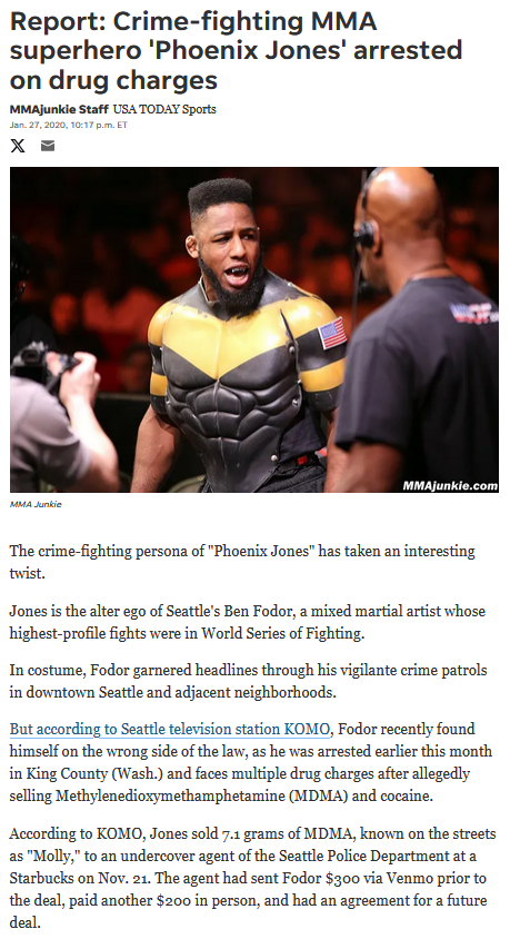 >>5756092 В США был какой-то мужик, который оделся супергероем и начал патрулировать улицы, мол борец с преступностью. Боролся с наркоторговцами, а потом его поймали на торговле веществами и крышевании.