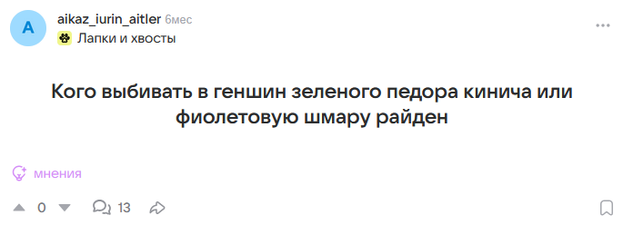 фурина это архонт самый настоящий, пиздёж типо " она отделила свою человеческую сущность" это всё хуйня. вот мы идём и видим что океанида фокалорс это архонт и фурина часть этого архонта, это как пложить ногу на трон типо нога правит пока что, вы можете плакать что нет это не так, не архонт, но фокалорс пришли твёрдым голосом сказала "я щас убью себя нахуй" и все заткнулись, потом поплакали. потому что фурина это архонт няху, она делает литерали чё хочет, захотела часть себя отделила, захотела стульчак туалету приделала обратно и вы можете плакать, дрыгать ножками, но всё ваше поведение это попытка воззвать архонта к действию, потому что фурина это архонт, её эго и сила реальны и существуют, и вы синтоодебилевшие океанидошвайны прекрасно это знаете