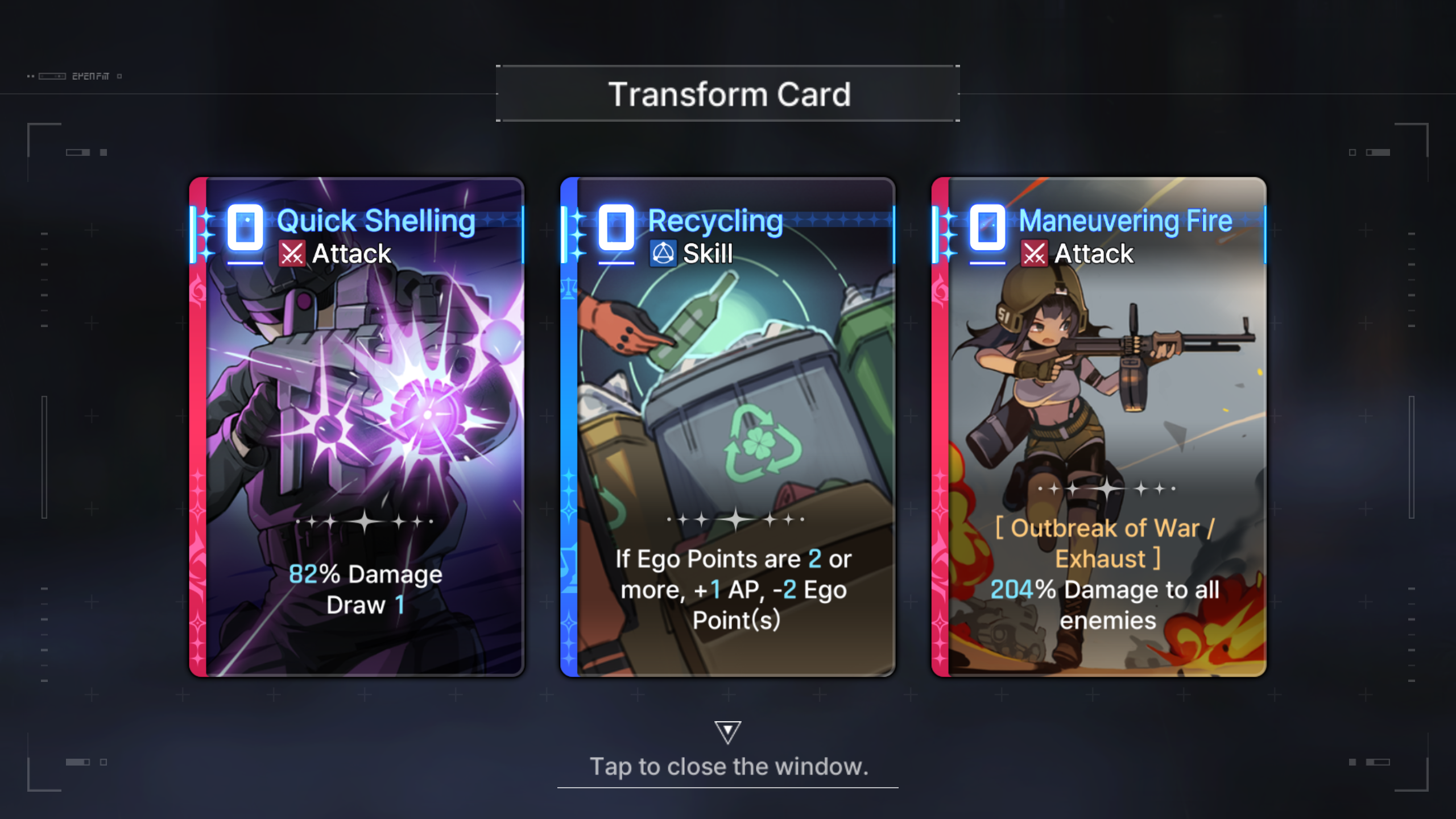 >>5776026 Там и вещи получаешь и новые карты и апгрейды старых и возможно прокачиваешь статы. БП персонажа скакнула с 15тысяч до 21ой. Причем есть и нейтральные карты, вроде лечения стресса случайному персонажу и превращение шкалы ульты в ап.