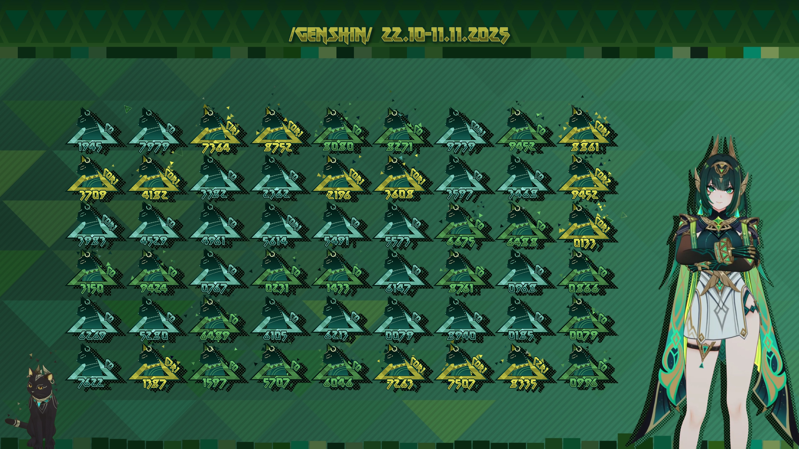 продолжаем отмечаться на алтаре Нефер алтарь обновлен правила отметки: 4 последние цифры UID + количество конст и опционально сигна с рефайнами также не поленитесь кинуть скрин с подтверждением выкрученой змейки 0000 С0 - без сигны и конст, C0R0 = С0 0000 C0R1 - без конст с сигной (без рефайнов) С0-С6 - количество конст, R1-R5 - количество рефайнов видеоверсия: >>5705992 → финальная видеоверсия будет на следующий день после окончания баннера зачем записываться, какой смысл? - это традиция треда предзапись на удачу и запись постфактум на память в архив алтарей (архив в шапке - FAQ и архив треда -> Архив треда: https://rentry.co/genarch ) если кого то пропустил или есть ошибки пишите