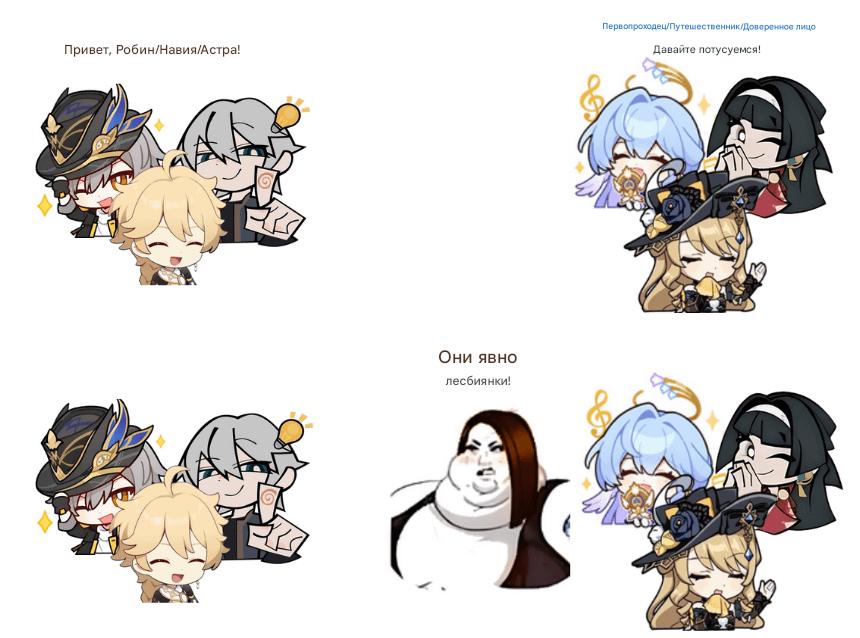 У западников такой термин есть, "himbo" - внешне накачанный и привлекательный мужик, но при этом немного ветреный дурачок, при этом вежливый и добродушный. Так что отставить тряску, никаких вайф никто красть не будет. Лучше за Нефер смотрите, она агрессивно всех пытается должниками сделать.