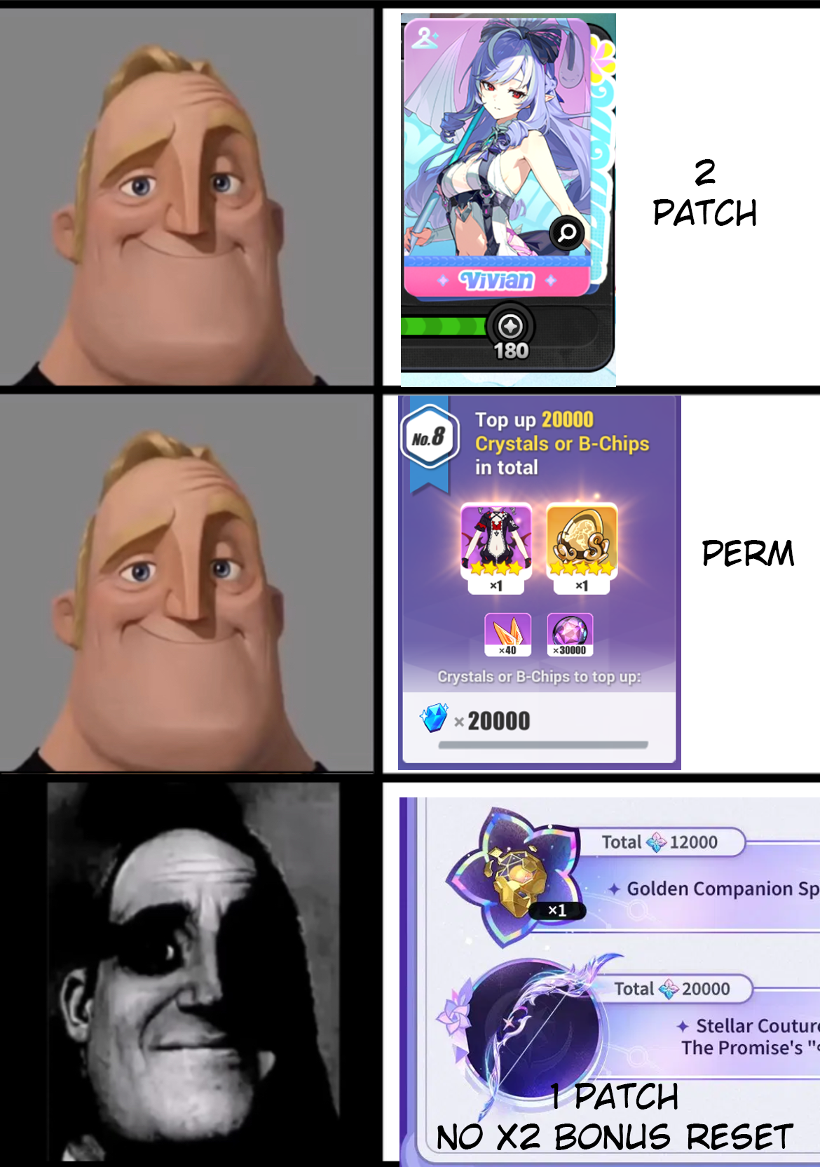 Странный патч. Есть ожидания от нового режима - полчасика по фану раз в 2 недели. Сюжет... Не знаю, чуйка говорит, что получится лучше Пенаконии, но не вау. А вот Кирена пока что выглядит как самое большое маркетинговое разочарование. С точки зрения геймплея твердо и четко положен мужской половой .... Спендинг ивент какая-то шутка ни к селу, ни к городу. Все больше подозрений, что нас ждёт ультра слёзодоилка и попытка через эмоции заставить покрутить. Хорошие продажи выйдут не за счёт новой жены, а за такой набор реранов, от которого отваливается жопа и кошелёк. Пожалуй, я впервые вижу настолько явную попытку выдоить азиатских китов, которые ностальгируют по ХИ3 и Элизии. Тема с кольцом и браком, это отдельный уровень пиздеца. Очень надеюсь, что я ошибаюсь.