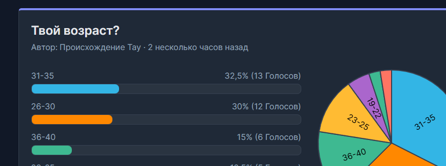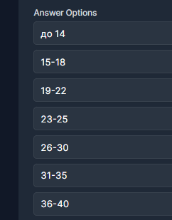 >>5788838 Там можно добавить возможность добавлять свой вариант при голосовании. Но нельзя ограничить по тому что вы туда напишете. Нормальный человек напишет например 25, а двачер "восемнадцать завтра будет" или "сосал?".