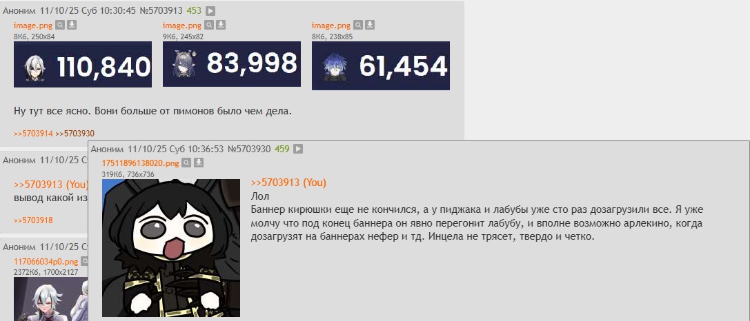 >>5790671 Да пожалуста. Нефер набирает нуу примерно по 1-2к в день на паймон мое. Путем не сложных подсчетов, под конец баннера она ну где-то 60к наберет. С дозагрузками 70.