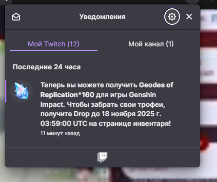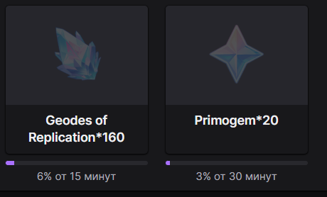 >>5791175 Это твич дропсы. Заходишь сюда https://www.twitch.tv/drops/campaigns, пролистываешь до геншина, там связываешь свои геншин и твич-аккаунты. После этого ставишь любой геншино-стрим на полтора часа на фоне и получаешь гемы и остальное.