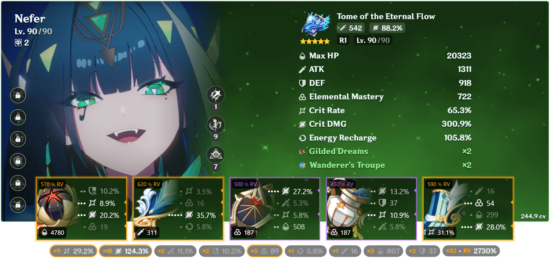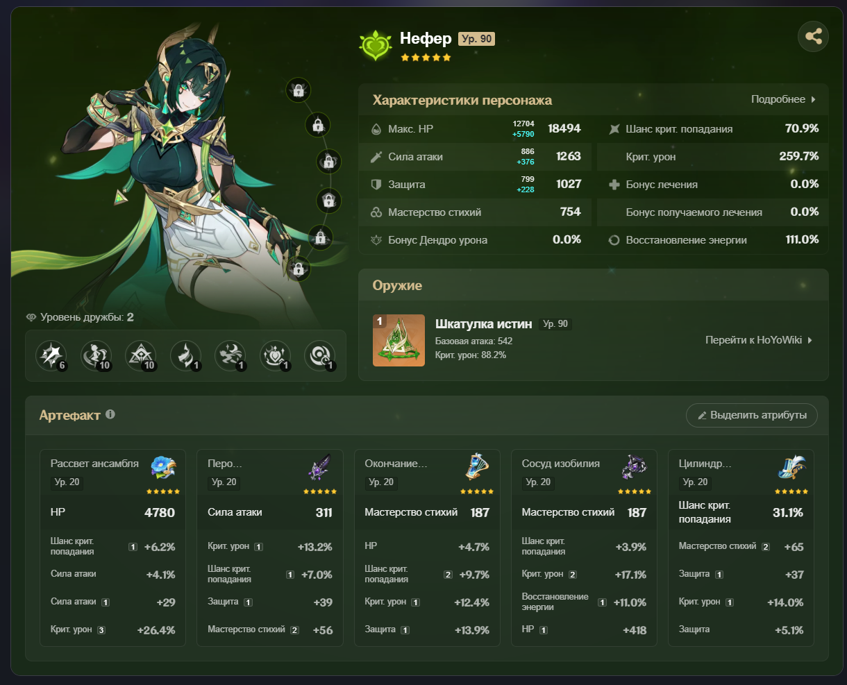 >>5790368 Вот моя Нефер, на пикче нет 20критрейта от Лабубы и с2 Няхиды и 40 критдмг от них же + 36 от сигны. Она в безсустейне Лабуба - с2 Няхида - Айно дамажит сильнее Скирк.
