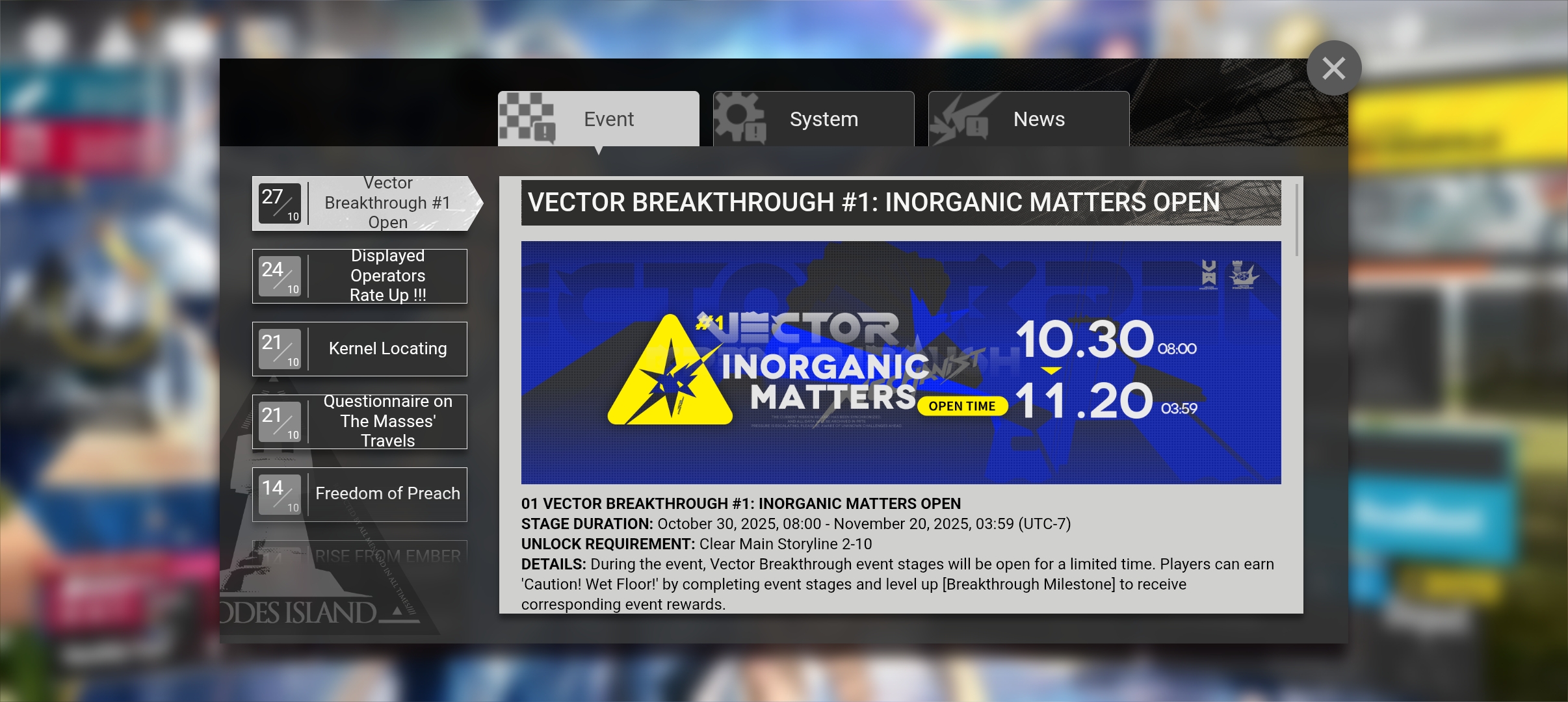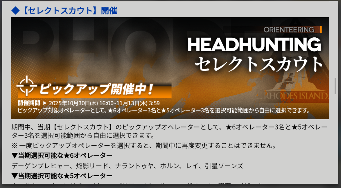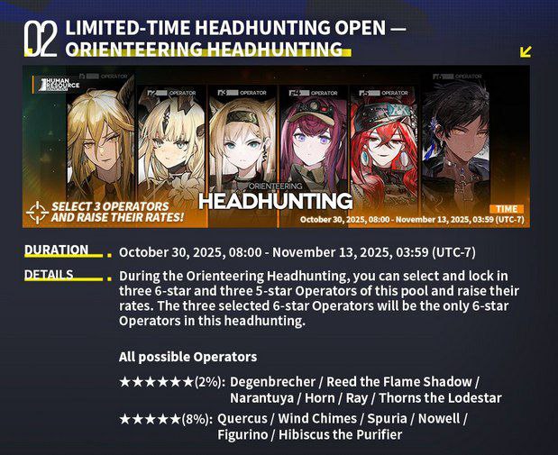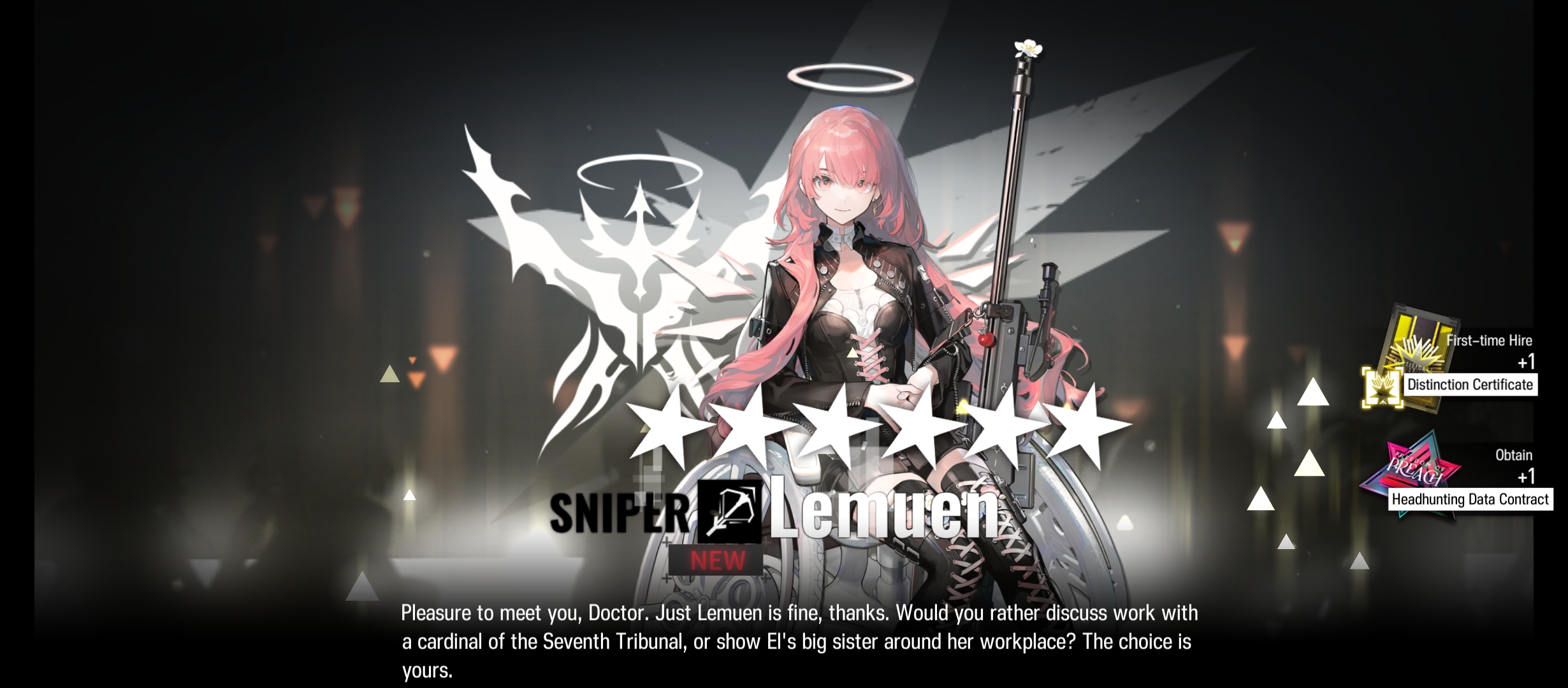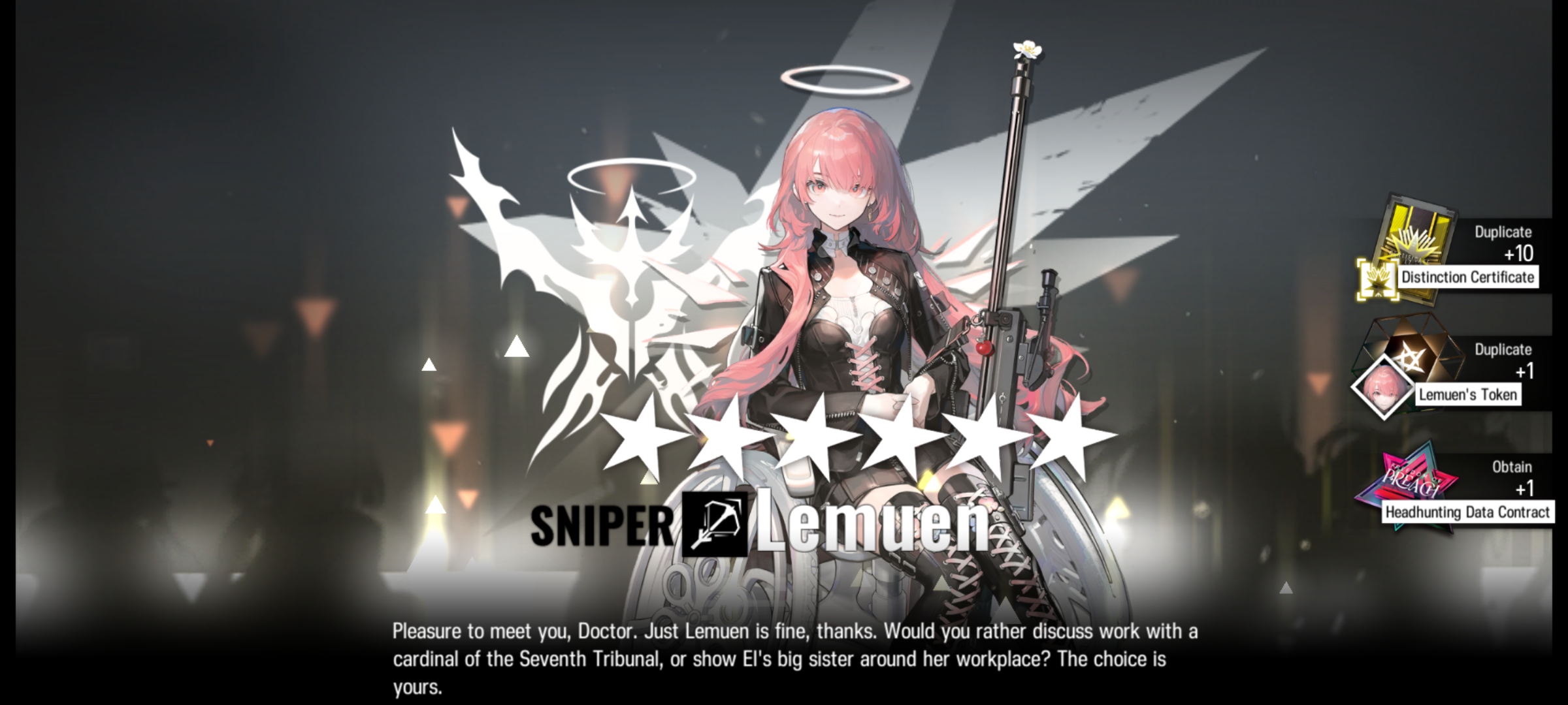 В честь этого ивента с 14 по 28 октября в игре ЛИМИТНЫЙ баннер «Freedom of Preach» 6★ — Exusiai the New Covenant (Лимитная) / Lemuen 6★ — Wiš'adel (лимитная) / Virtuosa / Muelsyse — (отдельный офф-рейтап для прошлых лимиток) 6★ — W / Rosmontis / Skadi the Corrupted Heart / Nearl the Radiant Knight/ Specter the Unchained / Texas the Omertosa — (лимитки, которых можно выбить, но они делят дроп-рейт со всеми остальными офф-рейтап 6★ операми) 5★ — Gracebearer