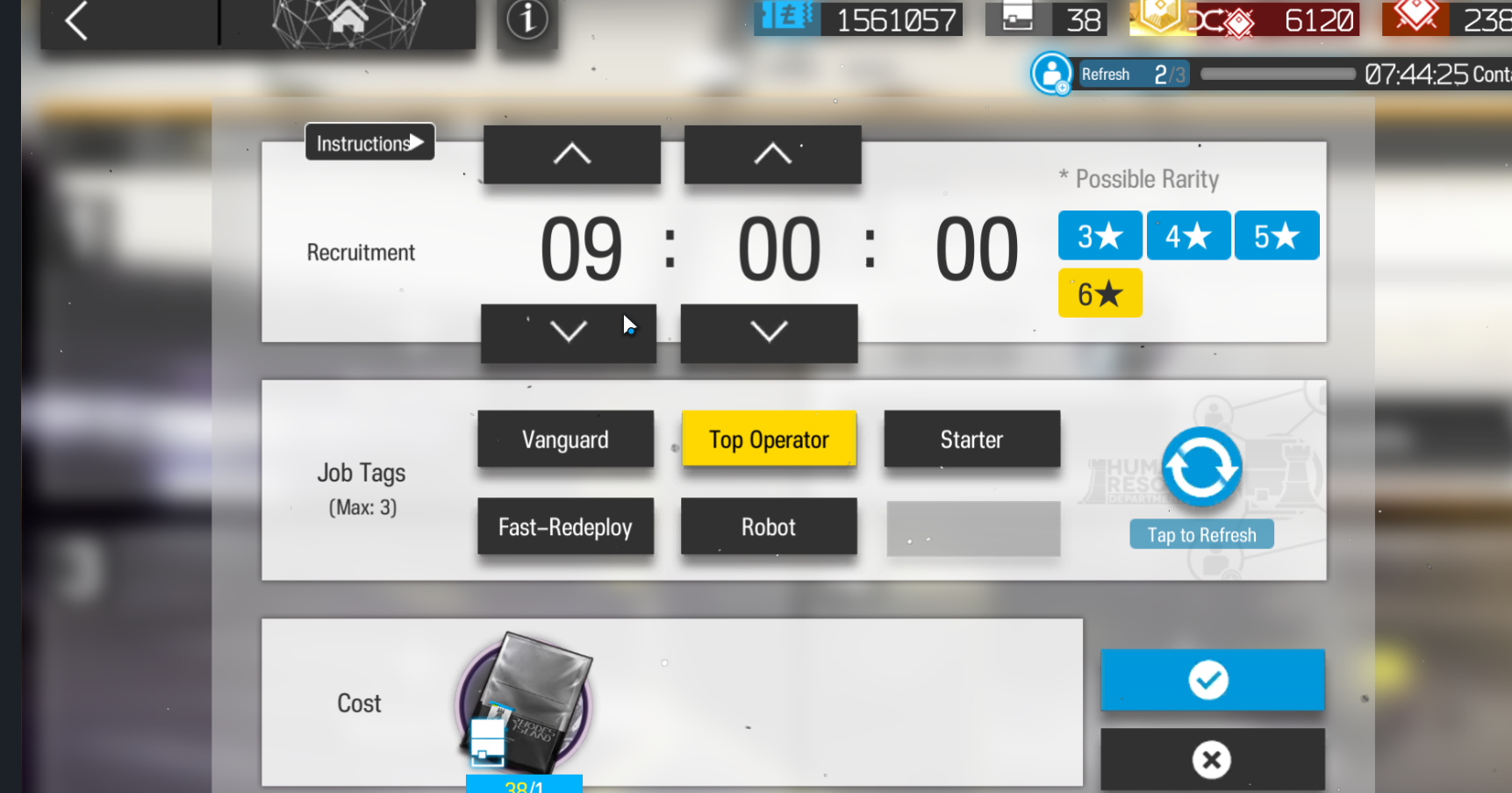 в общем у меня есть теория, что каждый рекрут слот это такой мини баннер с гарантами, ну и там в среднем четверка каждый четвертый или каждый пятый рекрут, а после 40 или 50 рекрутов будет шестерка, но это если один и тот же слот дрочить. В теории можно забить все четыре слота топ тегами, но для этого надо много билетов найти