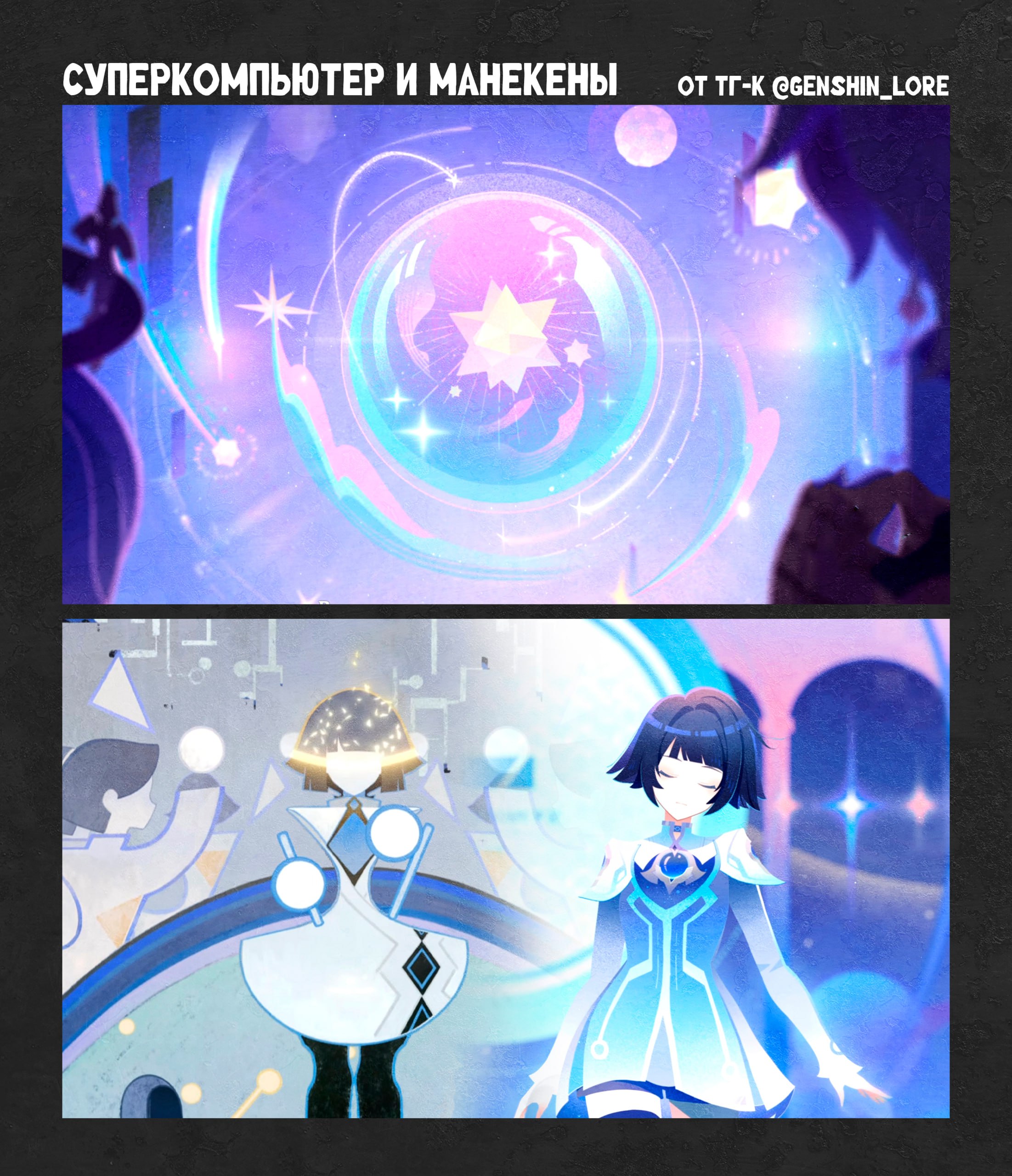 🩵 №??? — «Тейват» Здесь Октавия подружилась с Ведьмами Шабаша. Она многому научилась у них и преодолела одиночество. Подруги сообща создавали чудесные миры по типу Симуланки и за это время Октавия поняла, что и её собственному миру, внутри Астрального предела, нужны главные герои. Октавия решила, что на эту роль годятся ГГ и Паймон, а потому дала им доступ к Астральному пределу. Теперь мы, игроки, используя этот суперкомпьютер, можем создавать интересные виртуальные миры (мини-игры).