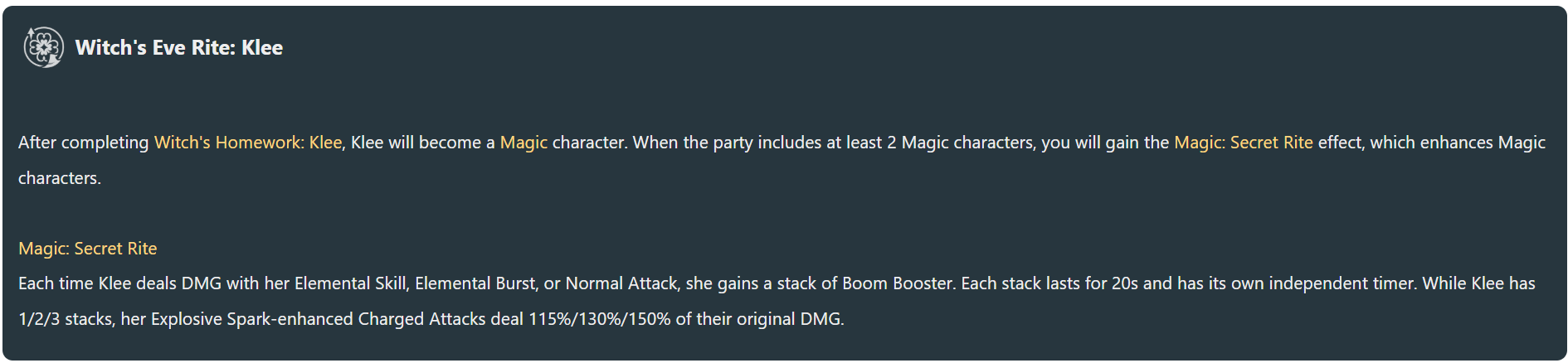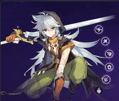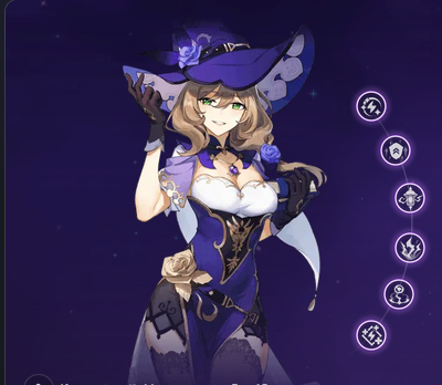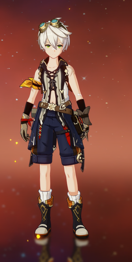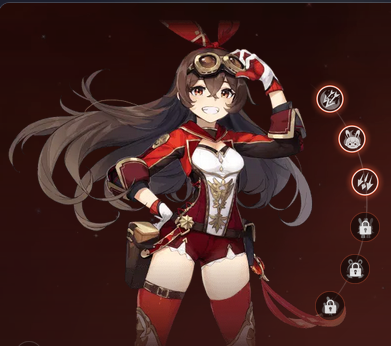 Пассивка: «Я командую парадом!»: Повышает урон взрыва стихии на 40%. После использования взрыва стихии, следующая атака персонажа кричит «Салют в нашу честь!», призывая белого коня, который топчет врагов.