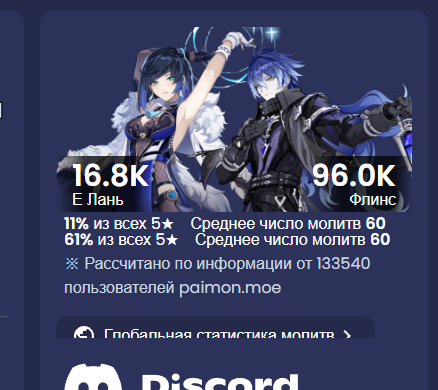 >>5804083 Сверяйте с акашей Обычно данные паймон.мое вдвое ниже, чем данные Акаши - так 600к мопедов на Акаше, на паймон.мое означают 300к круток; с Варесой та же хуйня - 160к против 80к У Хрюши сейчас 156к на Акаше, например, но это тоже не финал У Скипк 384к
