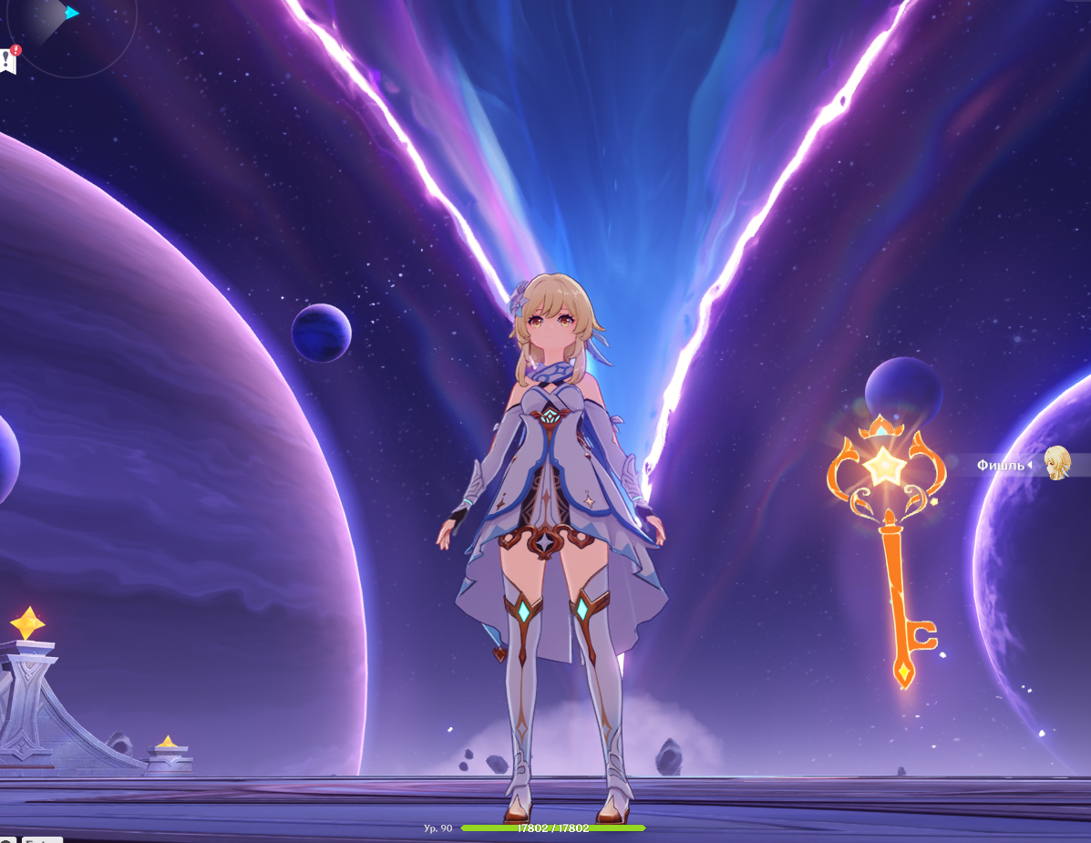 🩵 №??? — «Тейват» Здесь Октавия подружилась с Ведьмами Шабаша. Она многому научилась у них и преодолела одиночество. Подруги сообща создавали чудесные миры по типу Симуланки и за это время Октавия поняла, что и её собственному миру, внутри Астрального предела, нужны главные герои. Октавия решила, что на эту роль годятся ГГ и Паймон, а потому дала им доступ к Астральному пределу. Теперь мы, игроки, используя этот суперкомпьютер, можем создавать интересные виртуальные миры (мини-игры).