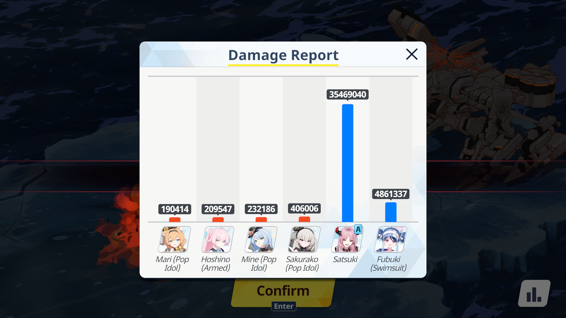 Красные миссии пока выносятся Хиной одной, синее - фиолетовым нормально, вот желтое не идет. Я тут пытался сравнивать сколько нанесут урона 1 лвл желтое., чтобы определить кандидаты в посвящение в прокачку (Юзу не нравится мне), короче выяснилось что Пина не домажит, Хасуми чуть получше нее, Джунко чуть получше Хасуми, но больше всего импакта принесла Акане горничная с дефшредом босса, почти приблизился к прохождению из-за этого. Но только ради 1 босса если.