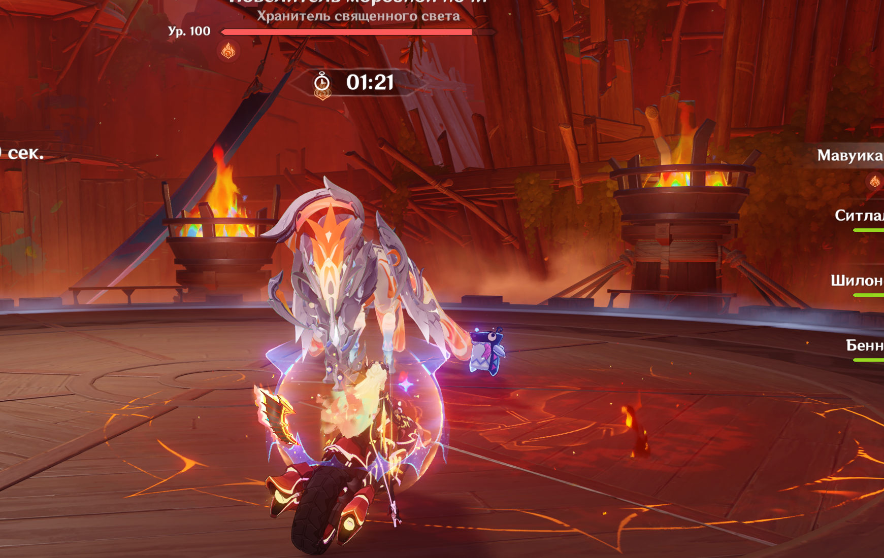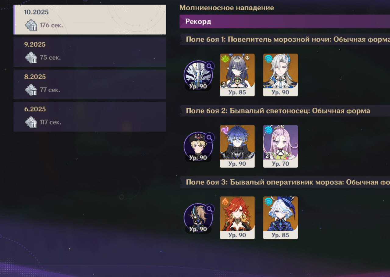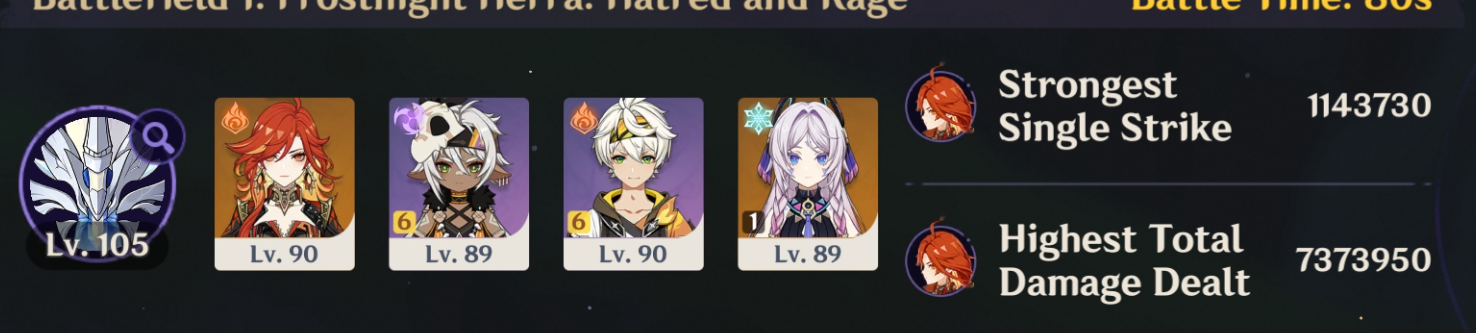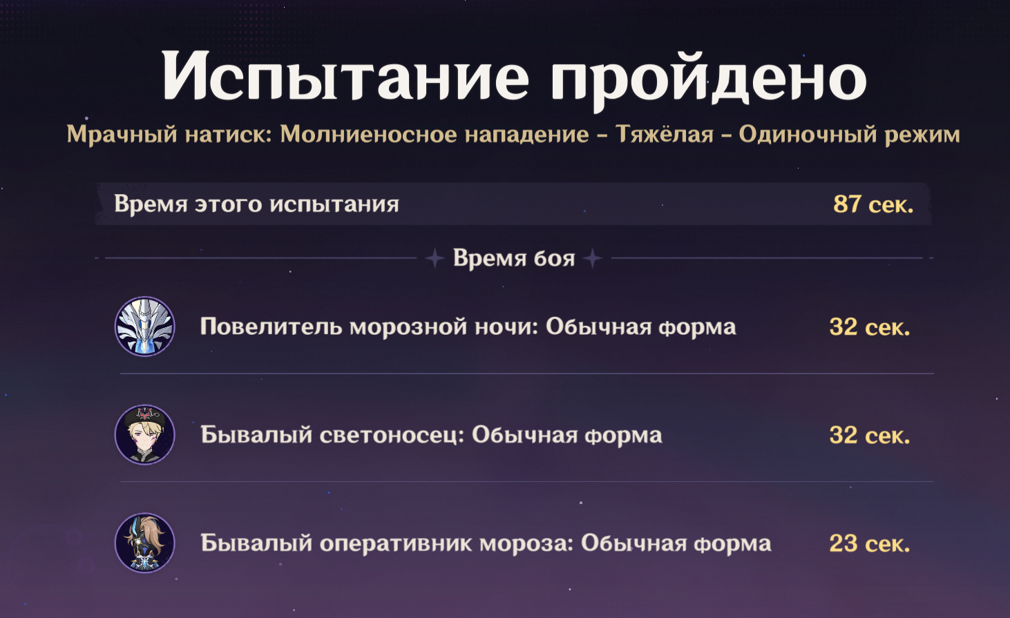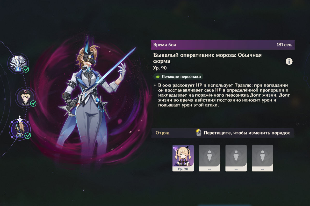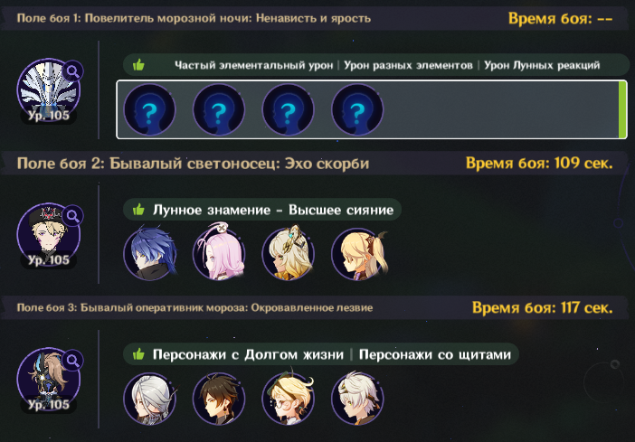 В общем от нечего делать решил попробовать пройти третий Натиск своей соло вайфушкой-четвёркой. Чтобы потом всем в треде хвалится, как же я хорош! Решил начать с конца, выбрал первым боем фатуйку и она очень легко пронеслась, буквально с первого же раза. Ну, подумал я, значит дальше также просто будет... Но второй мой соперник, этот хер в меховой шапке, он просто меня унижал. И мне то времени не хватает, то он просто выносит меня с нескольких тычек, под которые мне не везло попадать, в общем тяжело было. Особенно сливаться от случайного урона после пяти минут прохождения - такое было часто.