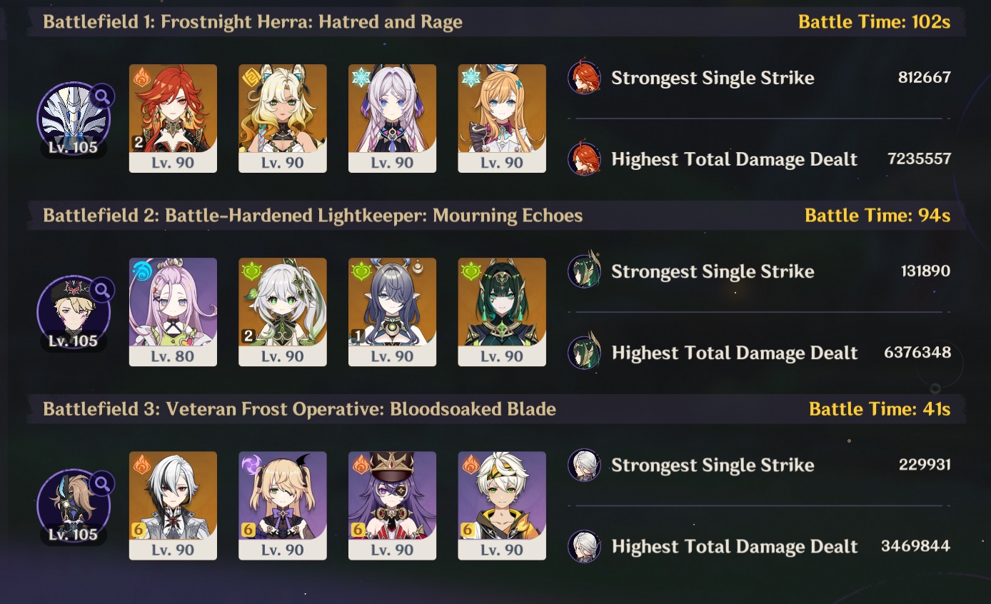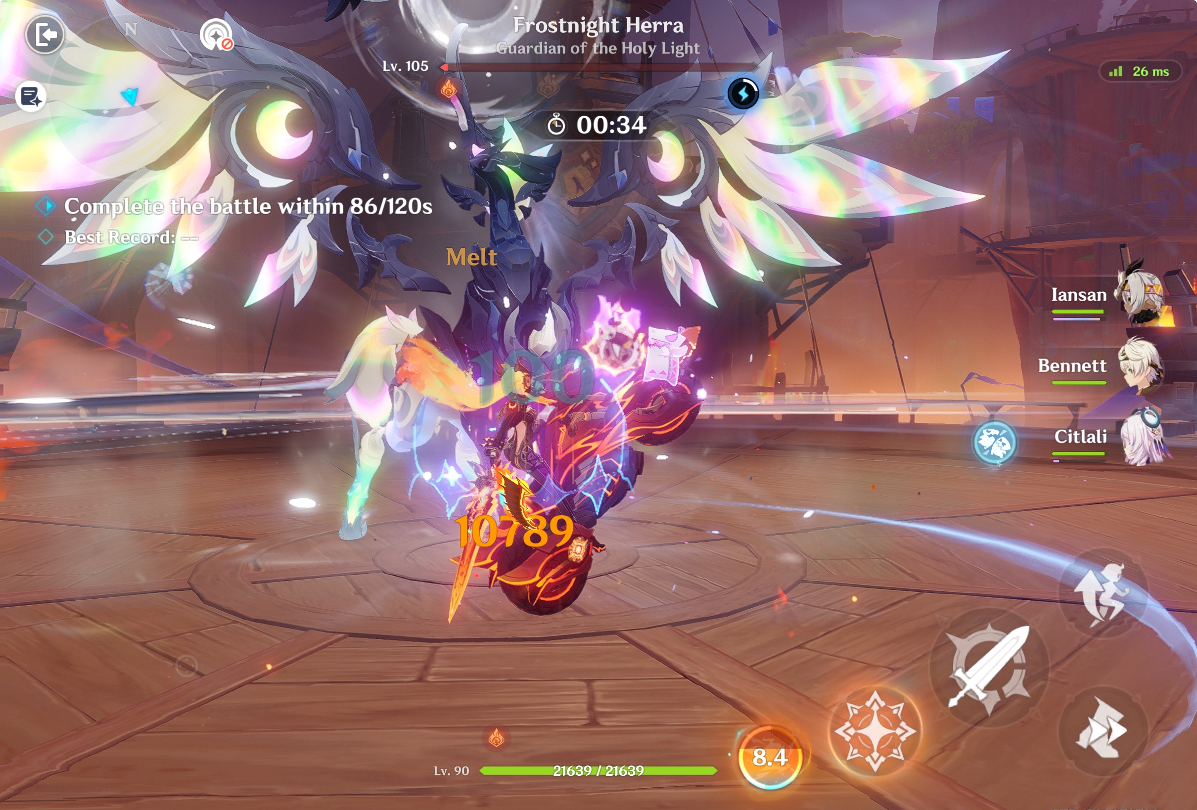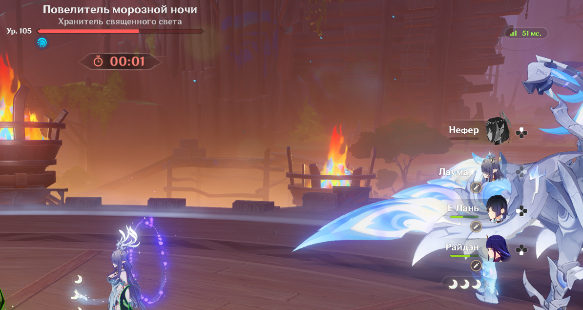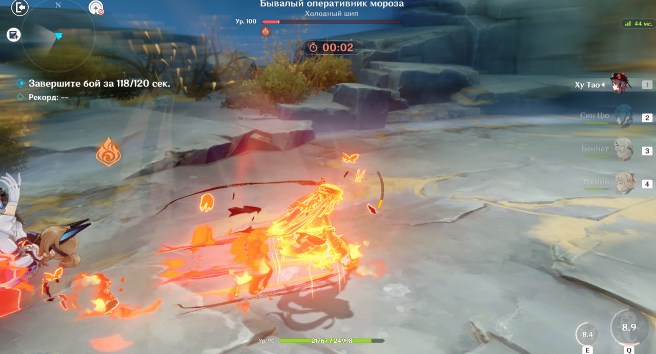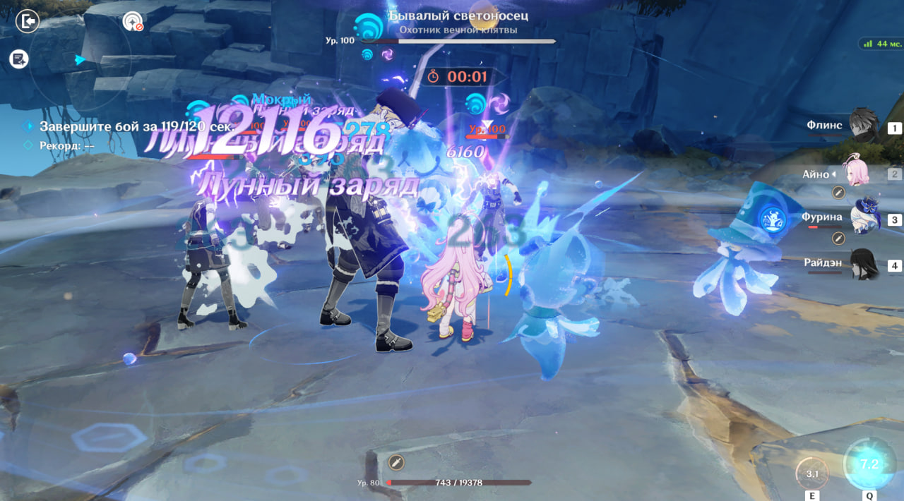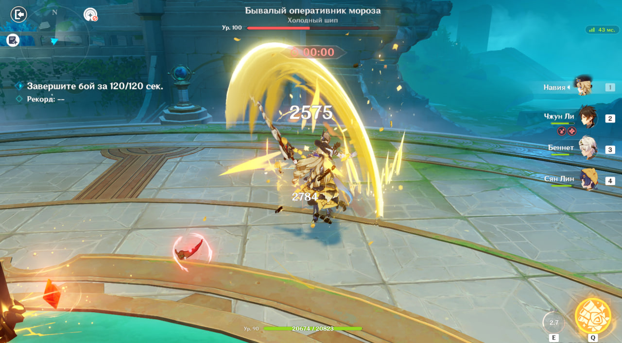 В общем от нечего делать решил попробовать пройти третий Натиск своей соло вайфушкой-четвёркой. Чтобы потом всем в треде хвалится, как же я хорош! Решил начать с конца, выбрал первым боем фатуйку и она очень легко пронеслась, буквально с первого же раза. Ну, подумал я, значит дальше также просто будет... Но второй мой соперник, этот хер в меховой шапке, он просто меня унижал. И мне то времени не хватает, то он просто выносит меня с нескольких тычек, под которые мне не везло попадать, в общем тяжело было. Особенно сливаться от случайного урона после пяти минут прохождения - такое было часто.