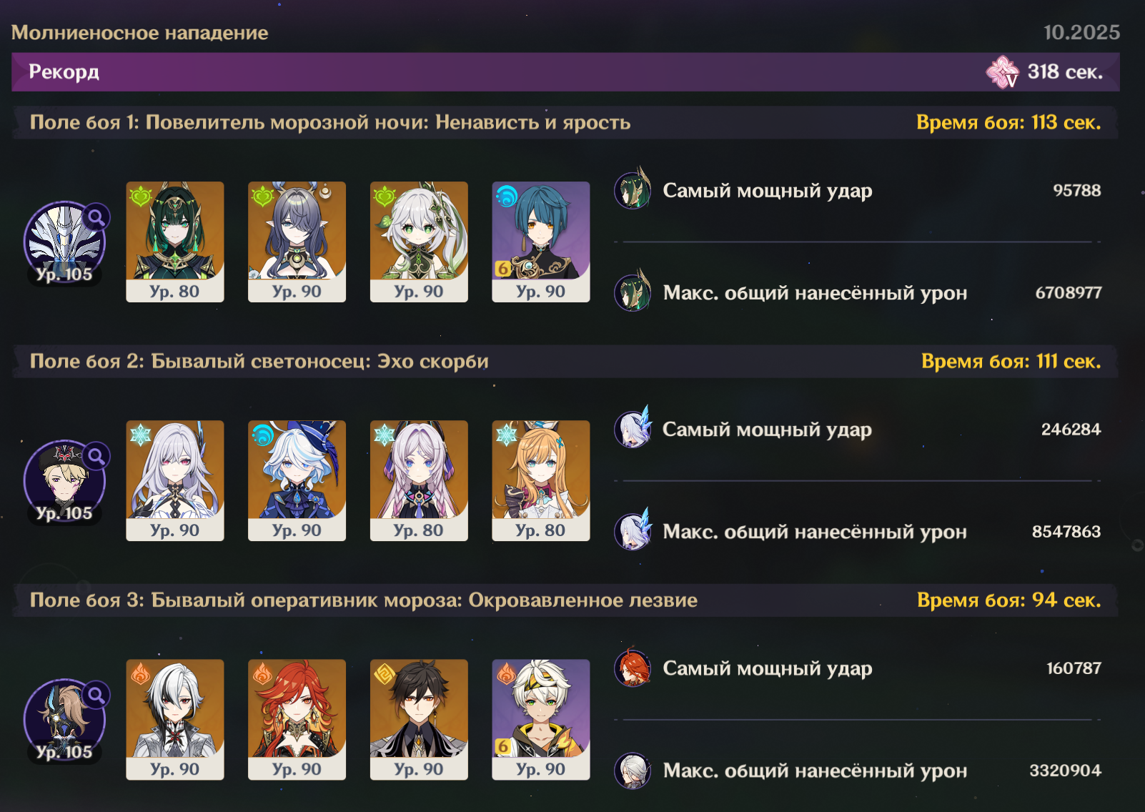 >>5816522 Нет, С0R1, конста у Ситлали: >>5816560 >>5816572 > то не мог за 120с, то вдруг за 80с? Видно лучше подгадались ротации по 20 секунд для полноценной работы ттдс. Или эффективнее мопедом бил. Или не знаю даже. Босс же с кокблоком, если его за одну фазу не убить, то потом хоть за 120, хоть за 220 уже не пройти - разве что и вправду физой дотыкивать. >>5816573 Дал Иансан фавоний, бил ей и Ситлалей, у Ситлали 200% восстановы. Старался быстрее зарядить ульту Ситлали: ну и был в основном ей, чтоб босс получил постоянный крио статус.
