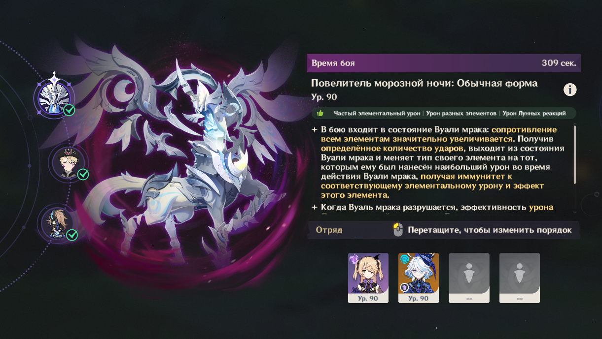 >>5816748 Да. Только там смысл такой, что пока он стоит в центре и пуляет в нас лучами, нужно чтобы по нему били только лунные реакции. Они во первых прогресс сбития его стойки быстрее повышают, а во вторых он не окрашивается ни в какой цвет и не получает иммунитет. В общем начинал бой ешки Фурины и Инеффы, и подпукивал Цаплей, чтобы ульту набрать. Как только он вышел из стойки, выпускай коровку и лупи до следующей стойки. Там повторить тоже самое с Инеффой и Фуриной. >>5816761 Да, сигна. На Елань накинул фавоний еще. С Фуриной проходил за 80 секунд примерно.
