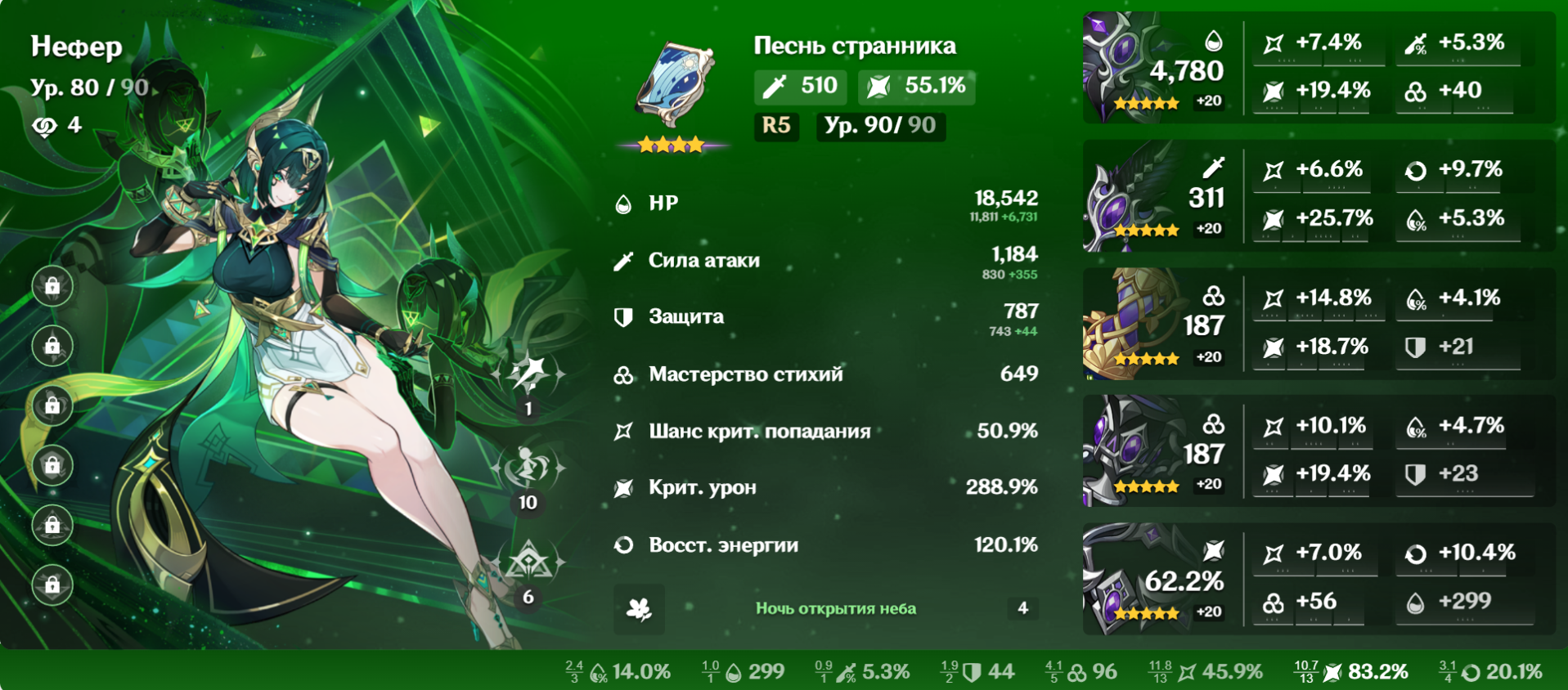 Фух лять. Продушнил четвертую таки. Понял прикол с дамагом Нефер. Там просто ебейший скейлинг от МС. Получается что Нахида бустит урон чуть ли не сильнее Лаумы. Меня к такому жизнь не готовила, Скирк номер 2 сука.
