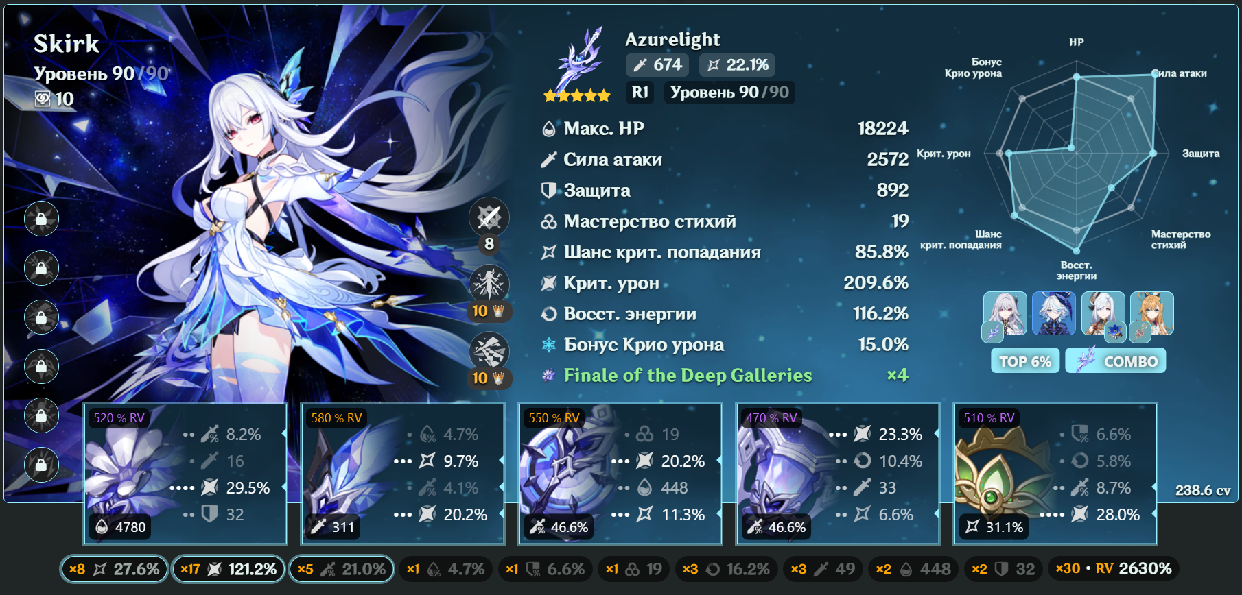 Чутка не хватает на коня, 5-10%. В пятницу короную скил Нефер и может крафтовому каталику накину пару рефайнов. Может арты какие выпадут еще. Но больше фантазии уже ни на что не хватит, там нечего в пачке улучшать. Сигурда кроме как Скирк вообще ничем пройти не могу, Мявуйка у меня почему-то не дамажит, хз как ей закрывают вообще.
