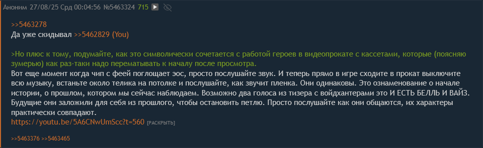«Ты знаешь о проклятой видеокассете?» Йидхари звонит вам посреди ночи... Именно ваш выбор заполнит лакуны в её истории о сверхъестественном. Эту историю я ещё никому не рассказывала! https://youtu.be/LZaiy5T6yxM?si=bRKpexrVYUdaK99z