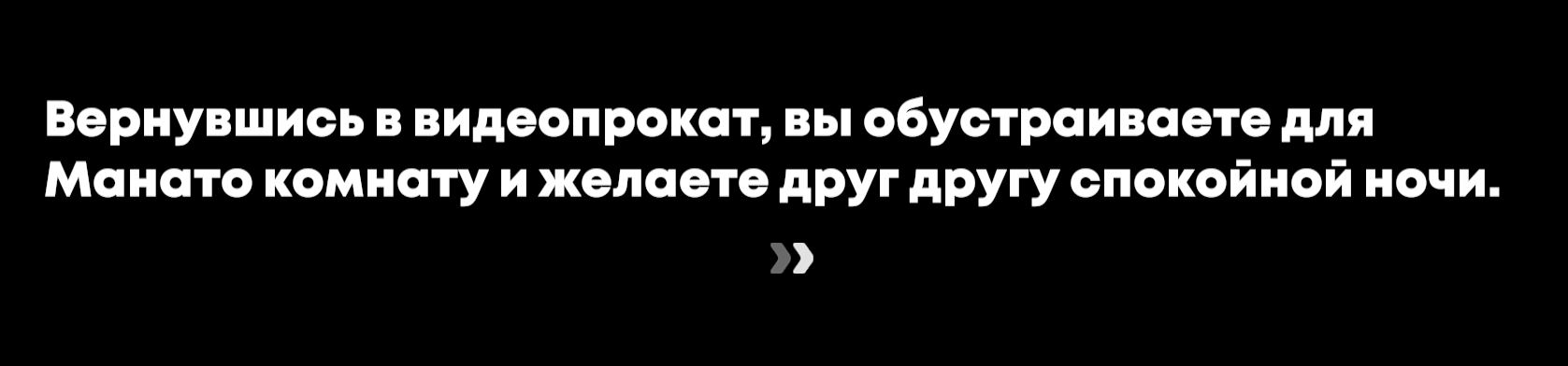 — Д-добрый вечер, Великолепный Фаэтон... — Не обращайте внимания на смущение Вивиан, прокси. Она просто слишком долго ждала этого дня. — Не могли бы вы угостить нас конфетами? Иначе «Пересмешникам» придётся устроить в видеопрокате небольшую шалость...