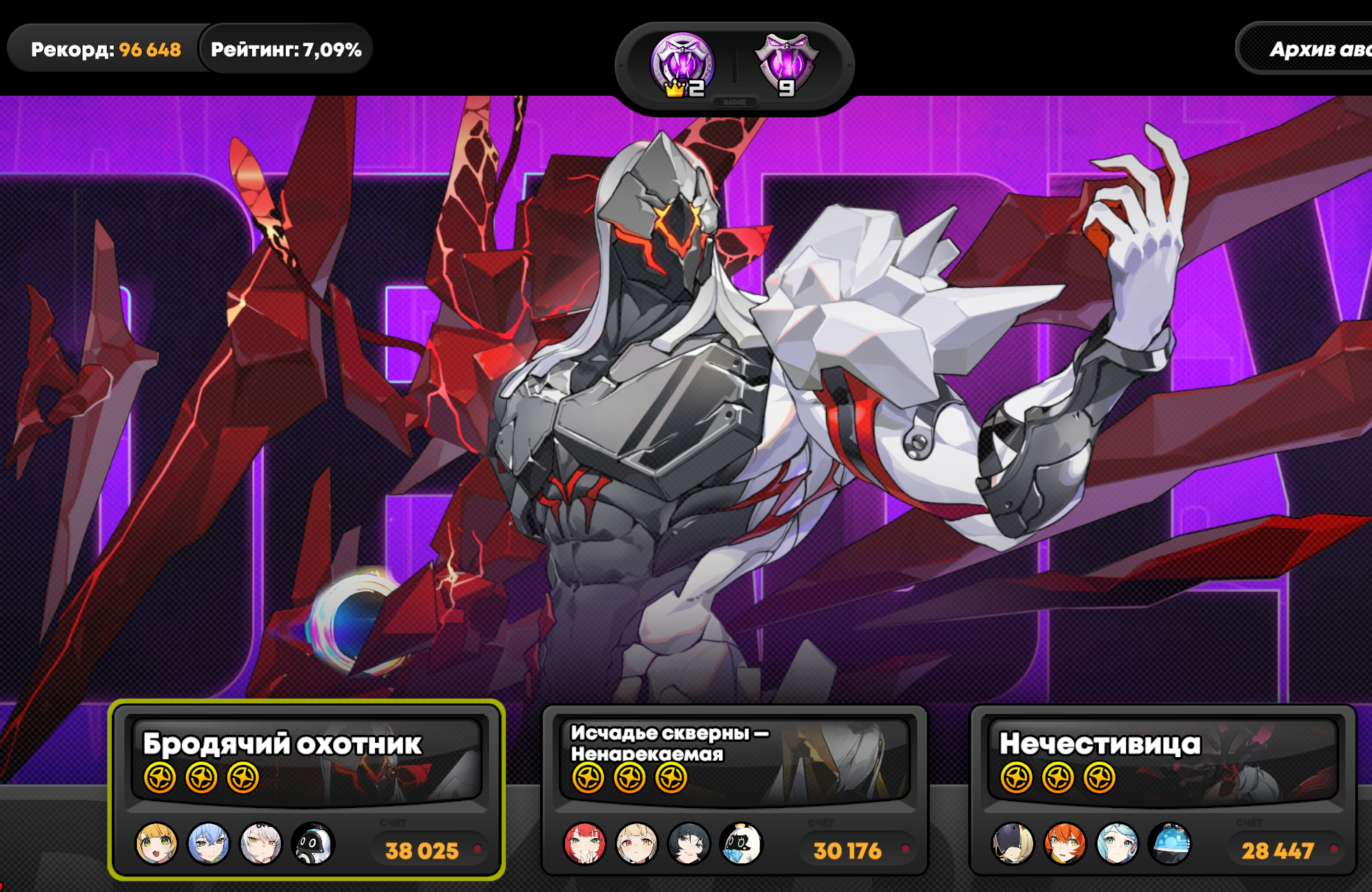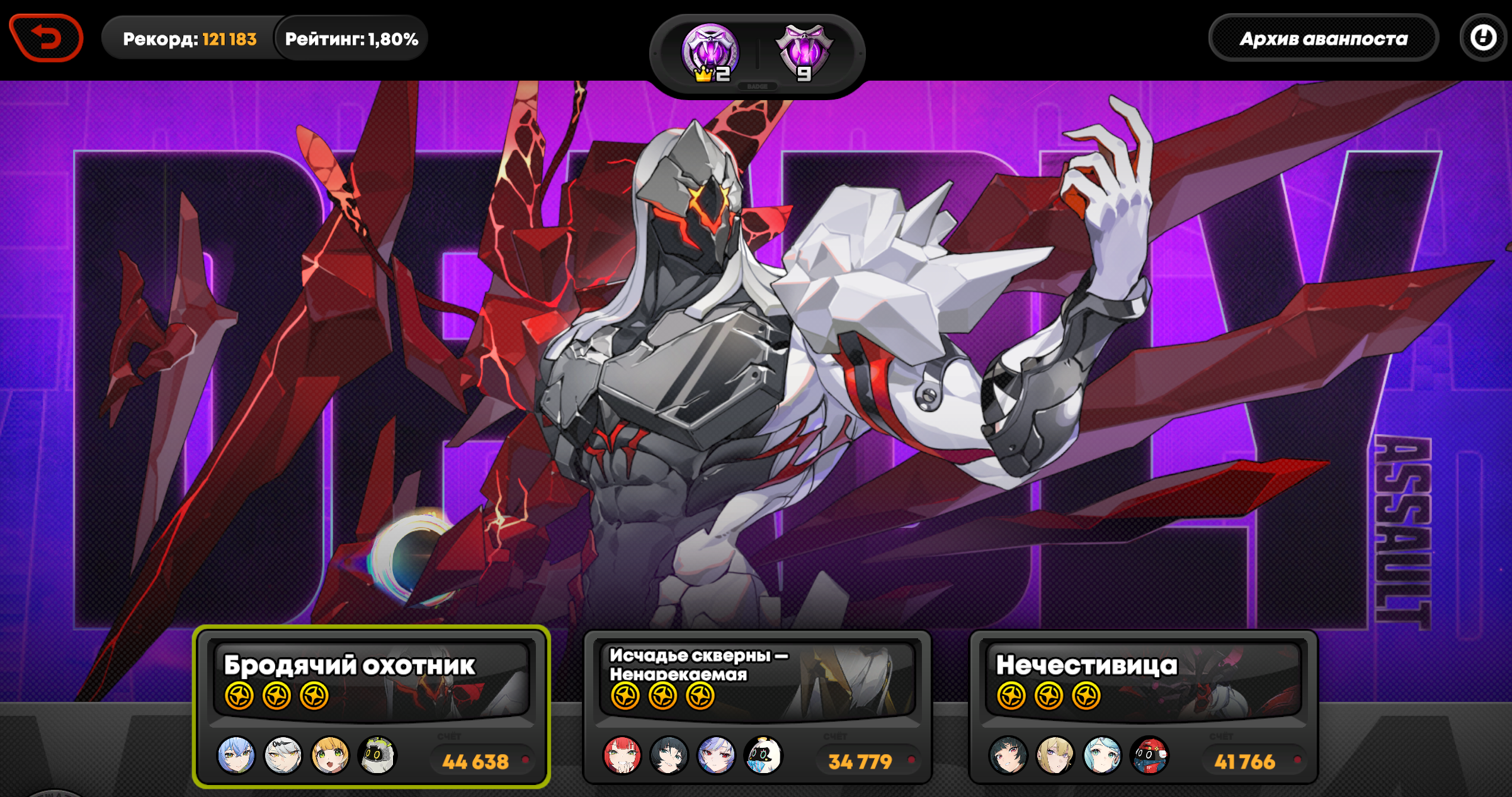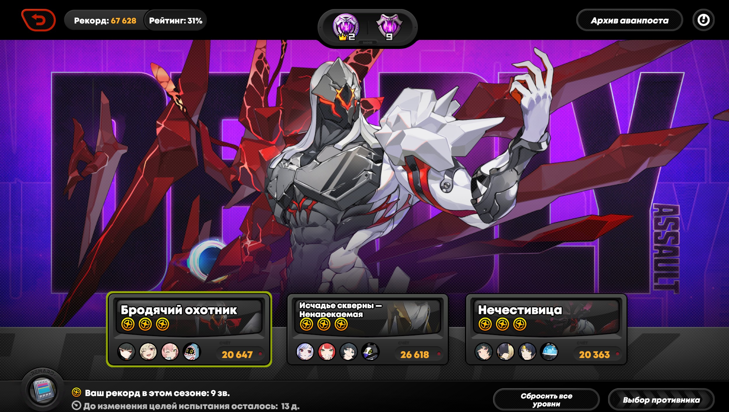 Все проходки что там выше были на Охотнике с Миябом 36к с Бернис+Юзуха, 30к с Астра+Николь делал на такой. Не знаю что будет если убрать диски на пенетру, но думаю будет супер хуево, учитывая сколько дефа у Охотника.