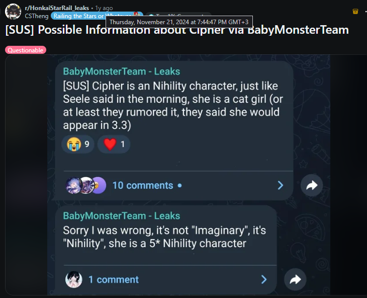 >>5817219 Он вероятно посмотрел на других и решил не отставать от них и поддержать всю эту движуху вокруг Кирены. А Ляо возможно намерено усложняет нольциклинг чтобы заработать на этих игроках.
