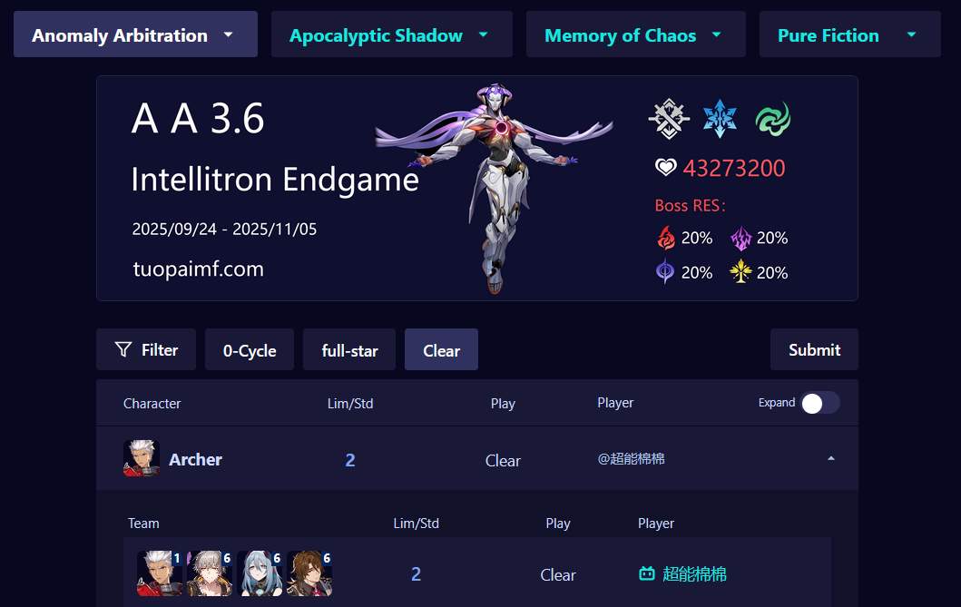 >>5818302 А ну тут грустно. Зря быковал Но всё равно на 6600 пройти можешь. Я тебе даже тимы обвёл. Только в команде Фейсяо наверное всё равно лучше Данчика вместо цыгана, урона поболее будет На то что там авг. меньше 3300 не смори. Это же хрюдвен, там дебил ебаные. Можешь смело прибавлять 8-10% по очкам к своему возможному результату >>5818303 А Руаньку всё равно возьми. e0s0. Больше не надо. Не байтись на Топаз ни в коем случае