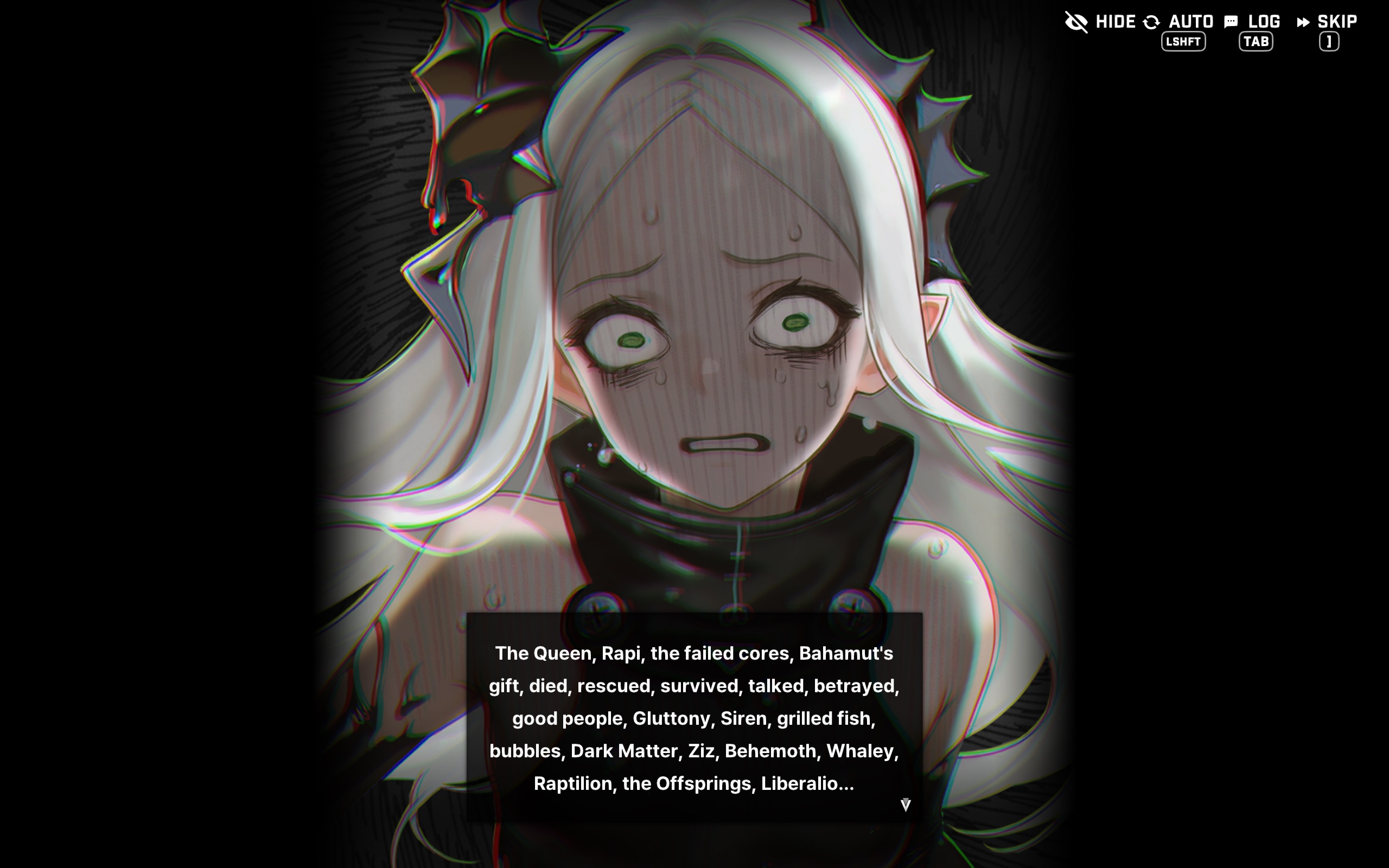 Четыре биста - ебучие дегенераты, как они умудрились создать "королеву", я удивляюсь. Бахамутик - дегенерат в квадрате, но забавная. На данный момент самая безобидная из всей четверки. В целом, конечно, всех трахать, Бегемотик чудесная. Интро главы с описанием чудодейственной жидкости из шкиканского тела вгоняет в краску.