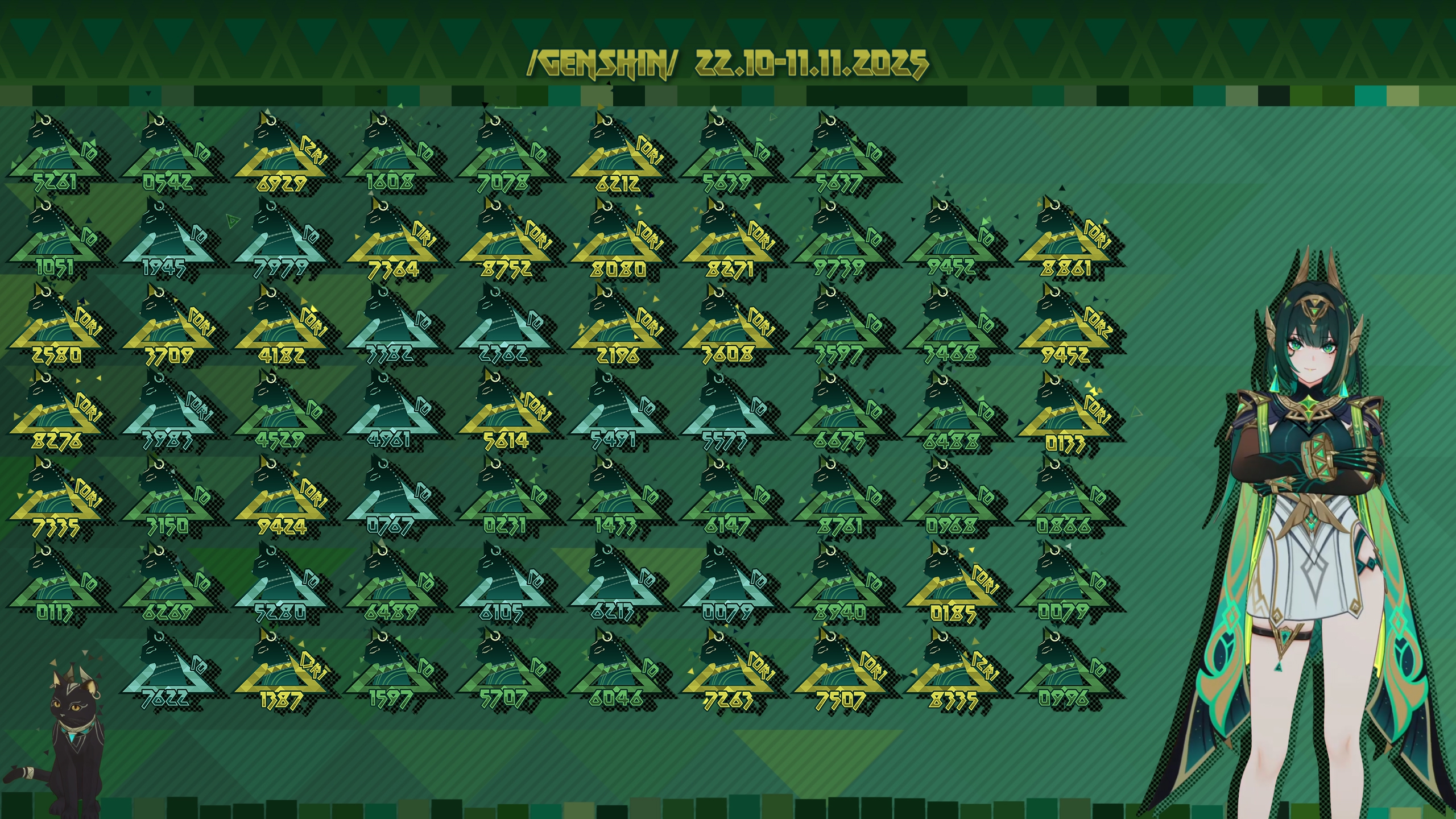 продолжаем отмечаться на алтаре Нефер правила отметки: 4 последние цифры UID + количество конст и опционально сигна с рефайнами также не поленитесь кинуть скрин с подтверждением выкрученой змейки 0000 С0 - без сигны и конст, C0R0 = С0 0000 C0R1 - без конст с сигной (без рефайнов) С0-С6 - количество конст, R1-R5 - количество рефайнов видеоверсия: >>5705992 → финальная видеоверсия будет на следующий день после окончания баннера зачем записываться, какой смысл? - это традиция треда предзапись на удачу и запись постфактум на память в архив алтарей (архив в шапке - FAQ и архив треда -> Архив треда: https://rentry.co/genarch ) если кого то пропустил или есть ошибки пишите