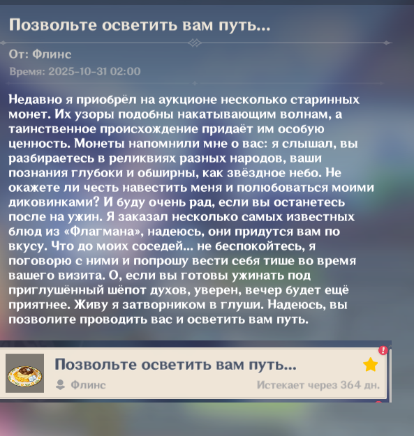 Но не суть. Первую свою Мону я забрал в конце марта 2024, там как раз был баннер мондовских хроник - для меня это был шанс. И вот я впервые открутил себе Моночку на том баннере за ивентовые крутки. Ещё одну бесплатную Мону я забрал в этом августе, когда бесплатно раздавали... И теперь, через долгие несколько недель, у меня будет моя с2 Мона. Я рад. (Ещё думал над с1 ХуТао, но почитал созвездие, и что-то оно вообще не впечатлило. Уж точно ради этого не стоит изменять Моне.)