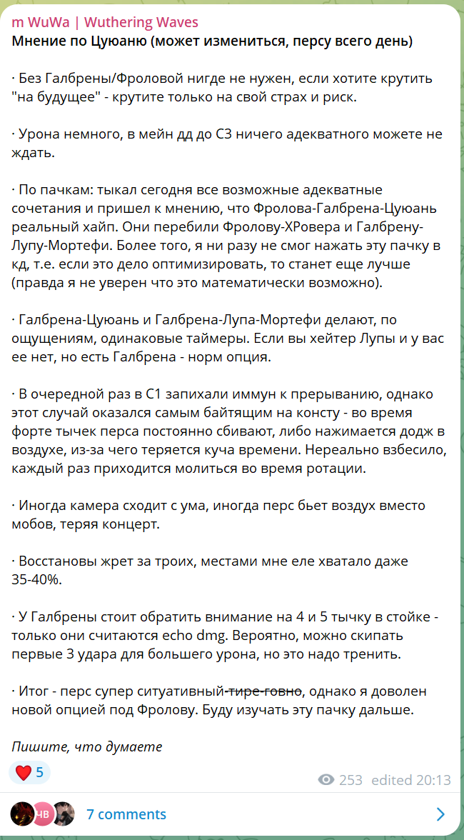 · Итог - перс супер ситуативный-тире-говно, однако я доволен новой опцией под Фролову. Буду изучать эту пачку дальше.