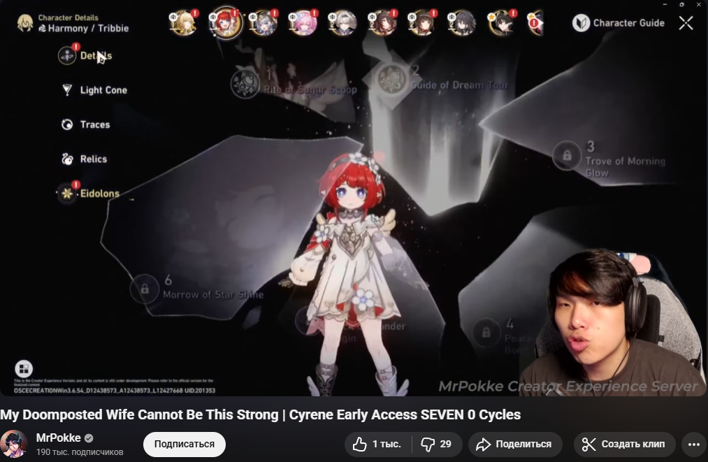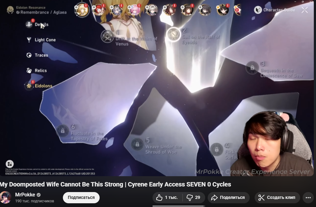 Кирена известна как агент 007: 0 смысла, 0 круток, 7 циклов чтобы набрать ульту Знаете почему Амфореус идет 7 патчей? Потому-что Кирена на протяжении всего 3.Х ульту копила Так в итоге романтическая история, которая нам была обещана еще в начале амфореуса это лук за 300 бачей? Сталесклеп, я посмеялся, актуализируйся Если бы за 300 баксов давали скин Лирены, то можно было бы и задуматься... Романтическая арка у Фаенона была с Мидеем. Кирена чисто младшая сестра, которая пошла не по тому пути и стала брать 300 долларов в час Вместе с Киреной разрабы добавили новую механику - Редкость персонажа повышается с количеством эйдолонов: е0 - 3 звезды, е2 - 4 звезды, е6 - 5 звёзд Кирена так любит фаенона, что бафом не даёт ему выйти из форма из-за которой его тело медленно разваливается Давайте дружно скажем спасибо Кирене за то, что она пожертвовала своей силой чтобы сохранить наши пулы на Е1 Трибби и Яэ Сакуру