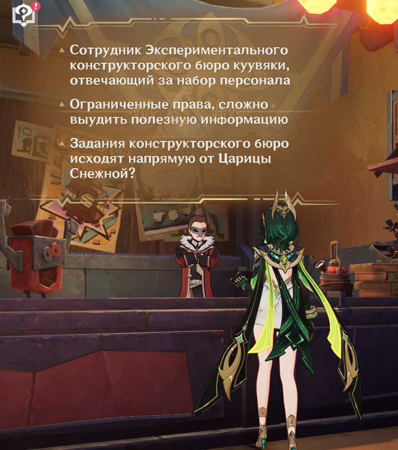 Попав в Нодкрай, место свое знай. Перед Нефер лучше не мелькай! Каждый твой шаг у нее на мази, В таверне нашей ты не бузи! С боссом Куратория лучше не шутить, Иначе ту шкатулку можно посетить!