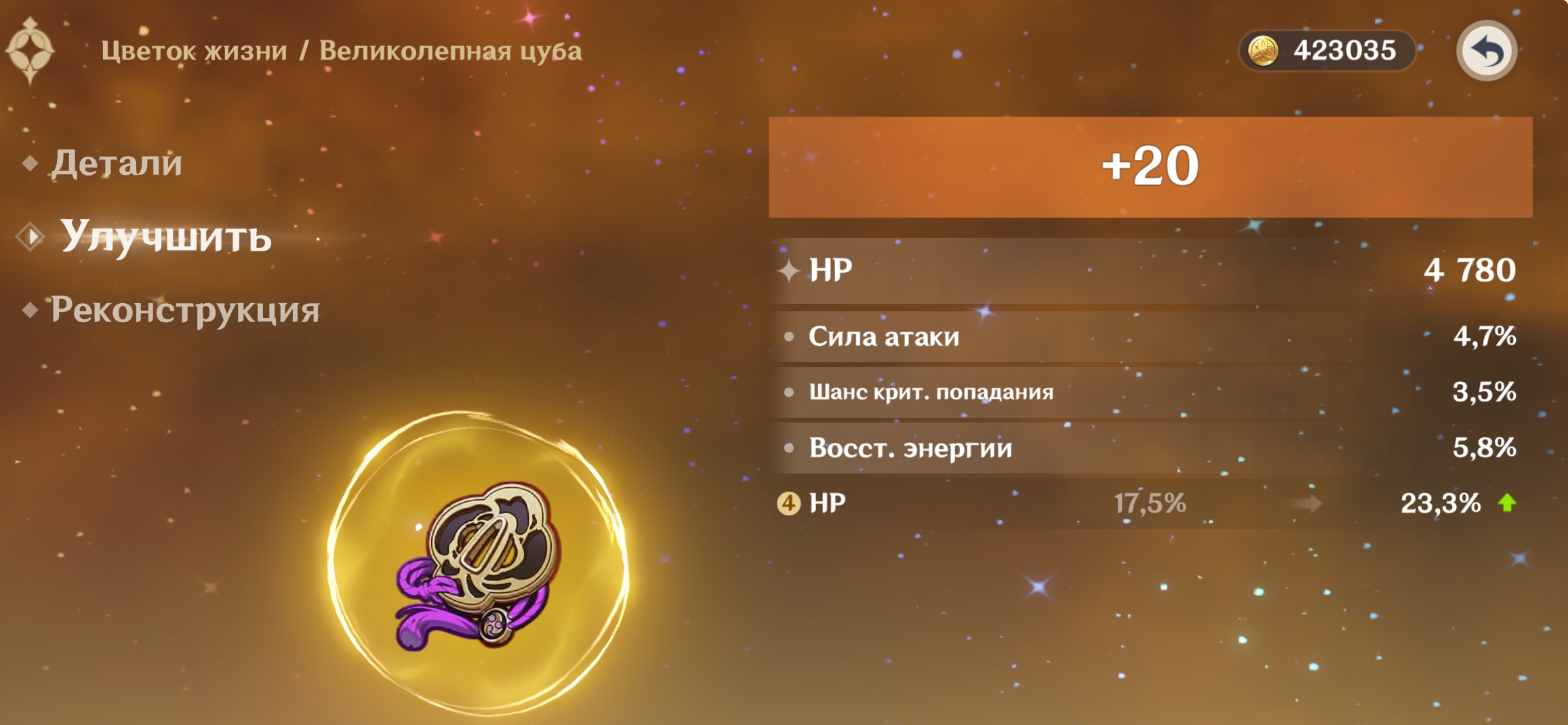 Но это был настолько удачный покрут, что вернись я назад, я бы крутил С1 уже целенаправленно. Зига помогла мне пройти кучу бездн и театров, во многих случаях без неё я бы не вывез. Даже Скуфья у меня собрана в чистый дамаг без энергоса именно потому, что в пачке с ней будет Зига, и хил не нужен. Всё-таки топовый хил находит применение себе. Пачка всегда жива и на фулл хп, умереть нереально, если только не словишь ваншот. Фанфары разгоняются за секунду даже на с0 Фурине.