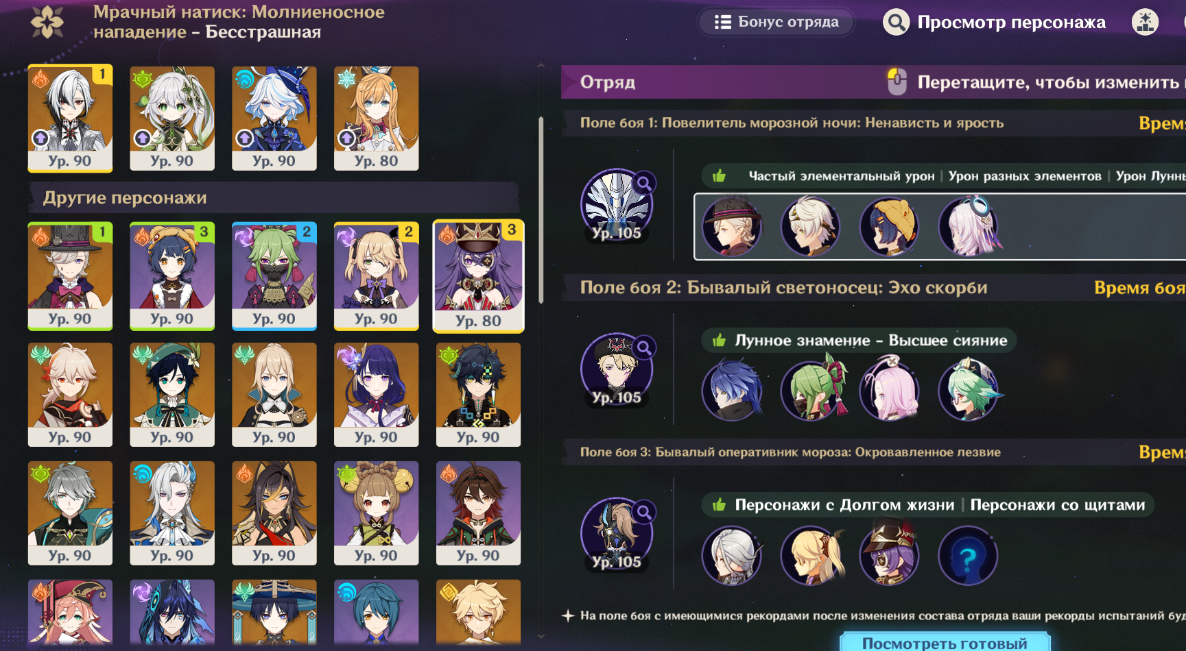 Кроме того, Зига очень хорошо себя показала на легендах Натлана, когда можно опять же не думать о том, что кого-то из пачки могут убить. А на некоторых легендах типа Сапфо и Рилай, можно вообще запустить Фурину + Зигу, и сфокусироваться на выполнении ачивки, пока сам босс медленно но верно раздамаживается.