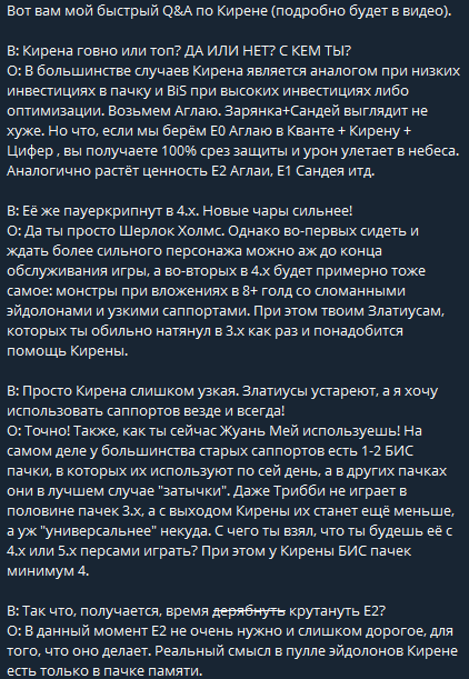 Тестил ли кто нибудь е2 Кирену как кор саппорт команд, которые ей обычно не рассматривают? Например е2 Кирена + ПГГ + Даня + СЕЙБА? е2 Кирена + Анакса + Даня + ГЕРТА?