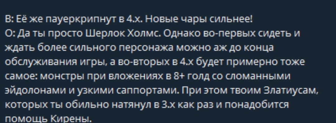 Всё тот же Анон Пукс, которого ты ща нюзаешь, писал, что в 4.х сначала продаются саппорты. Пискра и Перламутр как раз обе перед Яэ. Куда ты гг ставить будешь? За место сустейна?