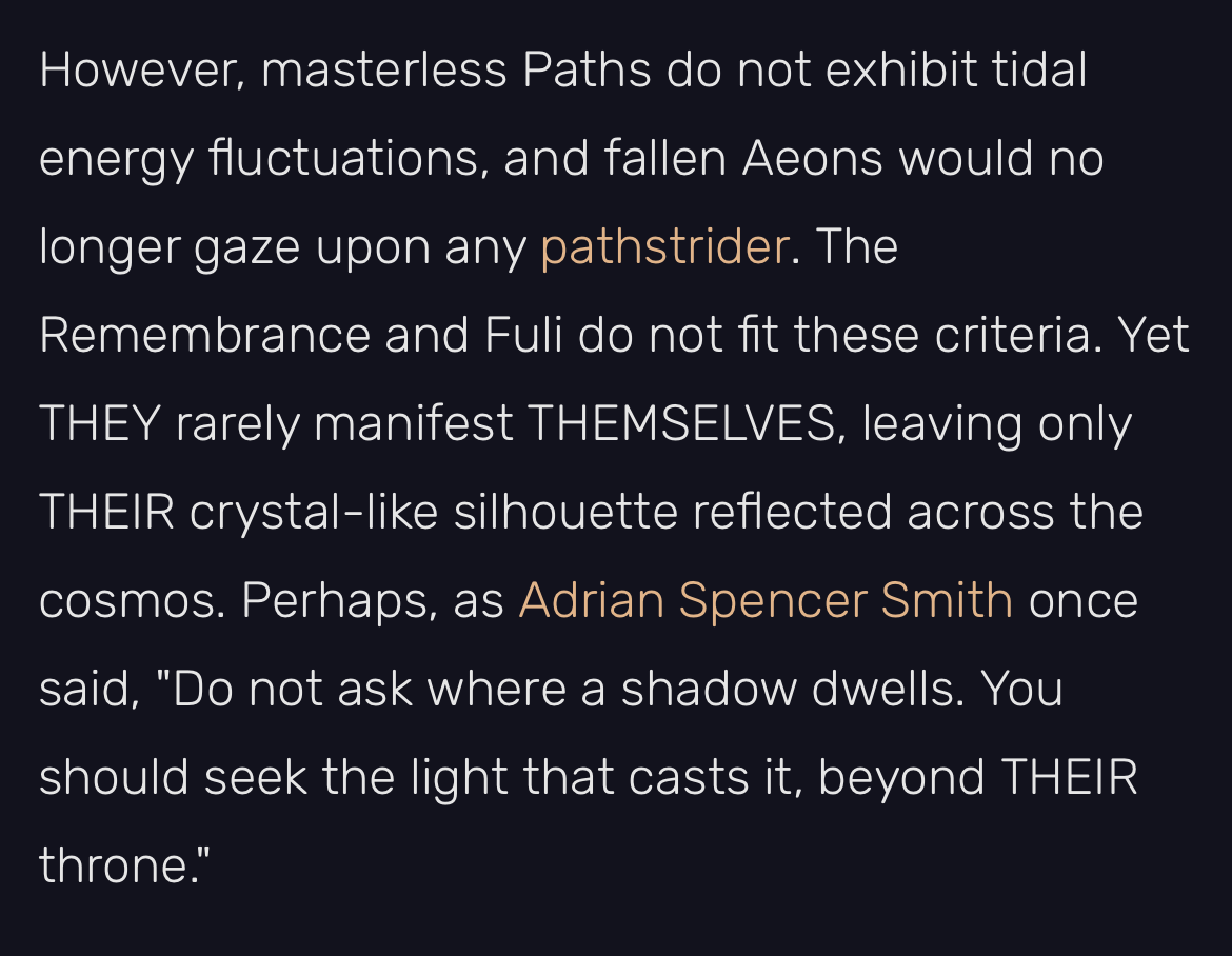 Пиздец, я в сюжете буквально только лейтмотив понимаю, а че между ним происходит ноль идей. Иногда чары для меня трещат что-то на белом шуме, слова вроде есть, а никакого смысла для меня нет. Я так и не понял кто такая темень, и почему ей не похуй на март.