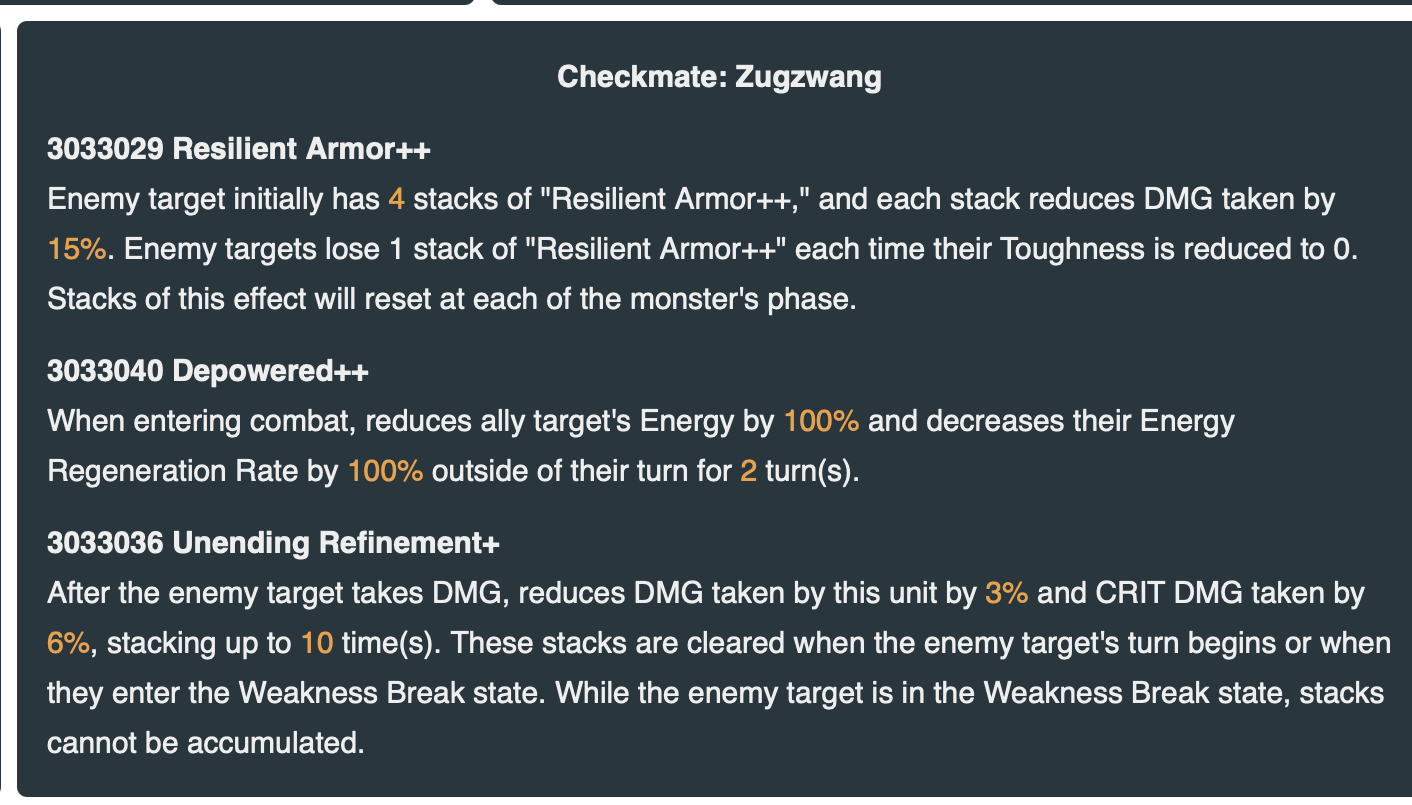 >When an ally target applies Weakness to an enemy target, increases SPD by 30% for 2 turn(s). When this effect is triggered by an ally Fire character, also regenerates a set amount of Energy equal to 10% of Max Energy, capping at 50% of Max Energy. This effect can only be triggered once for each character in each turn. Проходная фракция слитых клоунов сделанных быть слитыми клоунами отретконенная назад идя на поводу у говноедов в соцсетях. Вышеописанное говно вместо кита. Такого уверенного скипчаского ляо в этой игре ещё ни разу не выкатывал.
