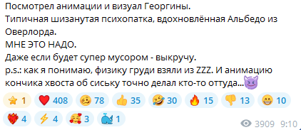 Кирене придётся очень сильно сюжетно напирать. Шишак полностью затушен. Георгина мне прям наполнила, почему именно я сливал бездумно крутки в Тьмарт. Но тут ещё и фансервиса сверху тонну наложили. Это пиздец. Шедевр. Я хучу эту суку в Е1 или даже Е2 оформлять. На Кирену не могу смотреть больше. Это говно.