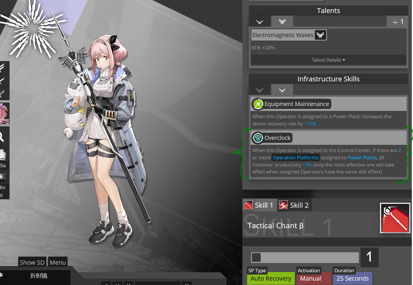 Из этого всего нас интересует: Immediately deals 380% ATK as Physical damage to 6 enemies in front... Allows operators on the left of 'Eye of the Snowstorm' to cast this skill with their own ATK when deployed (can cast 2 times)